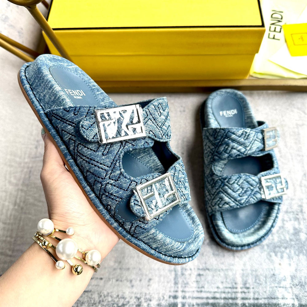 Fendi Fabric One Word Comfortable Slippers Shoes Sandal
