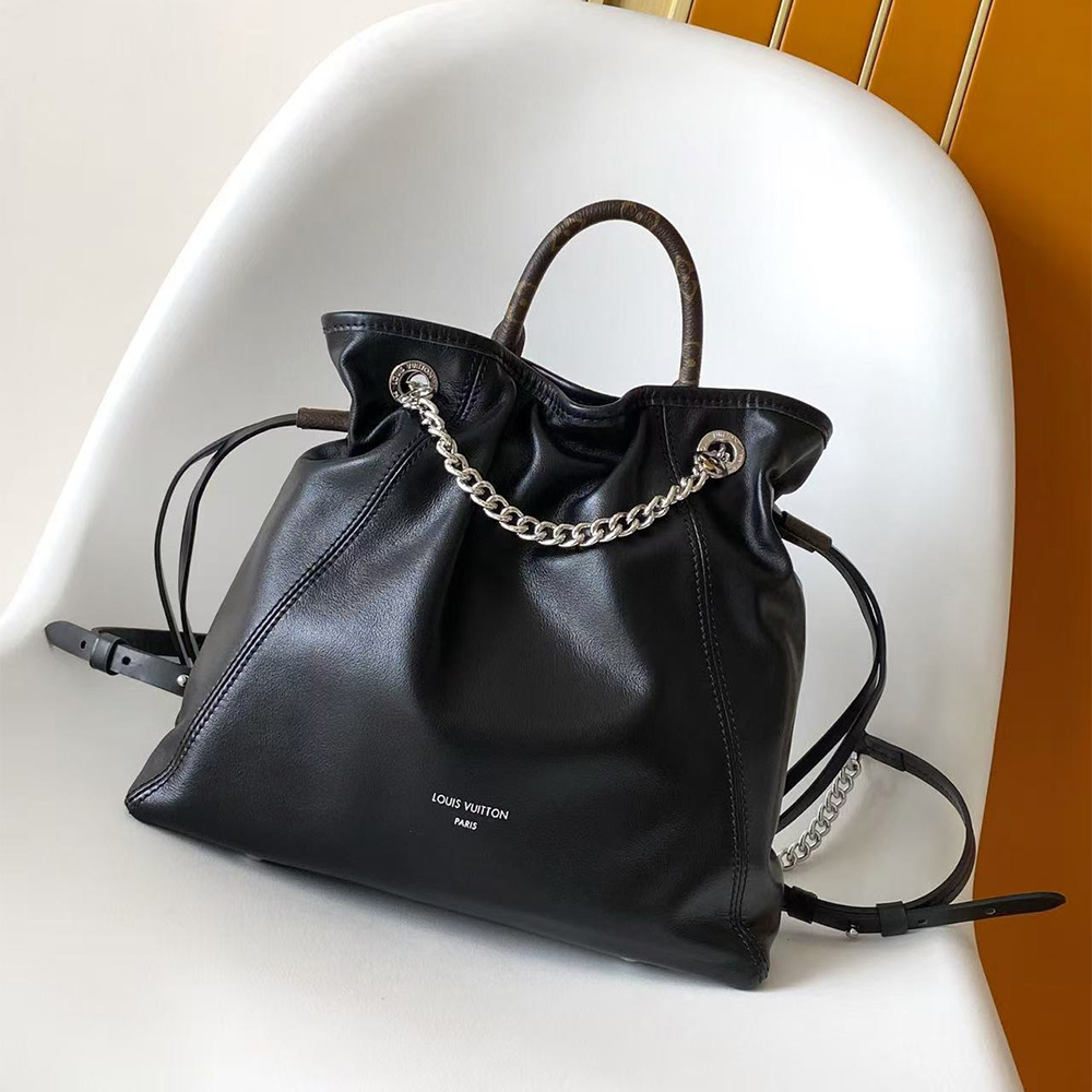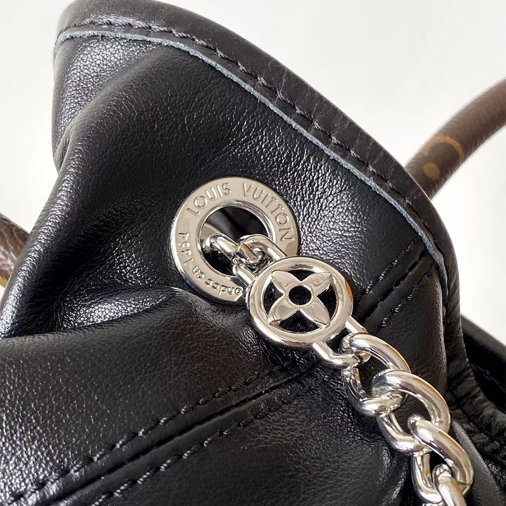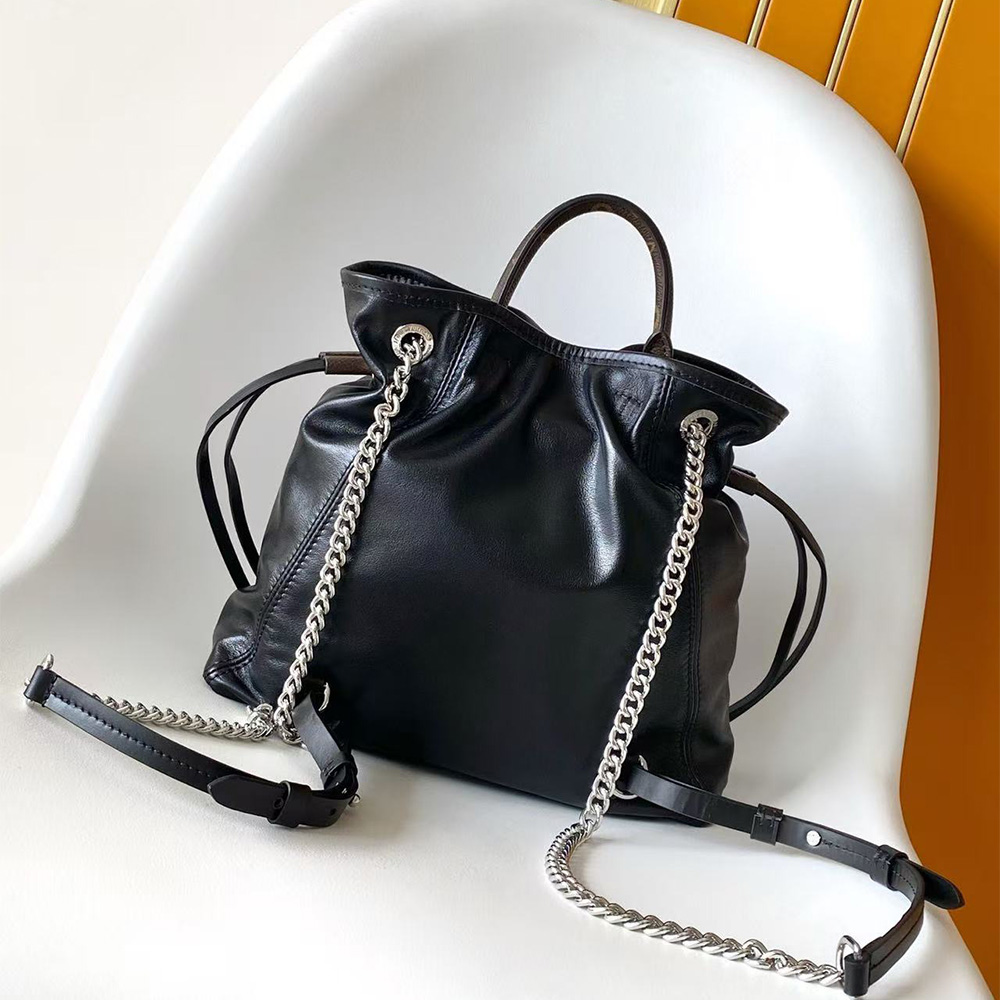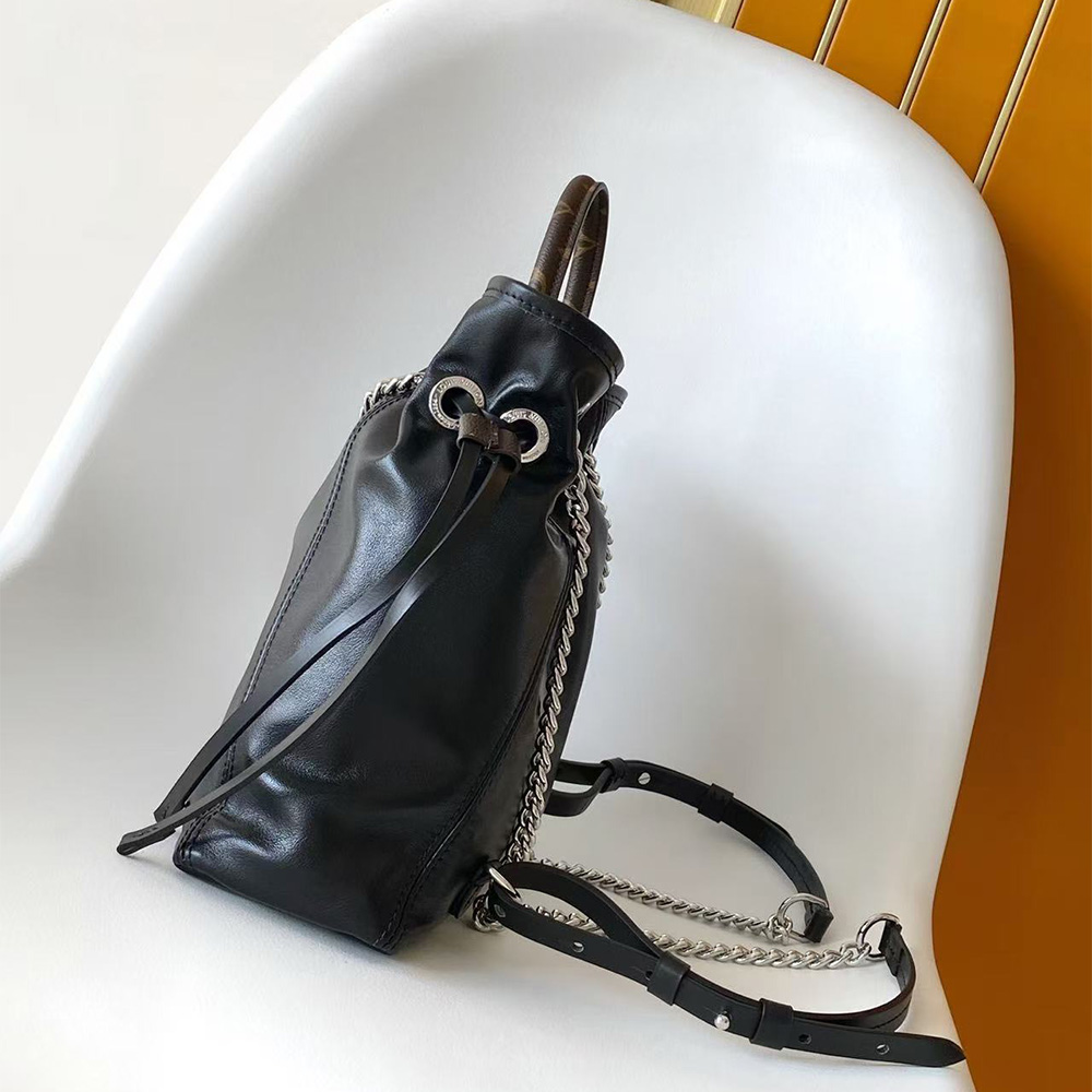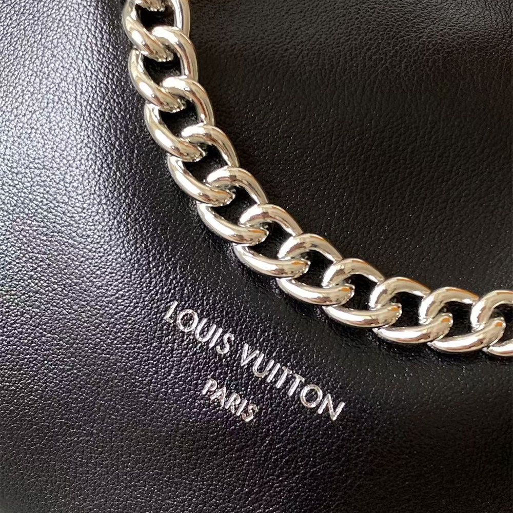 The LV Vibe collection introduces the Off Duty Backpack, a nonchalant hobo style that is perfect for everyday wear. Crafted from lamb leather, it is elevated with a jewel-inspired silver-toned chain that is adorned with a signature LV Circle. The functional design can be worn multiple ways, with options to transform it into a backpack or into a chain hobo.