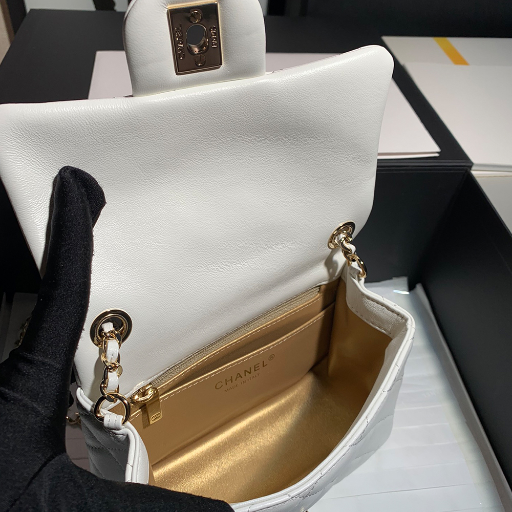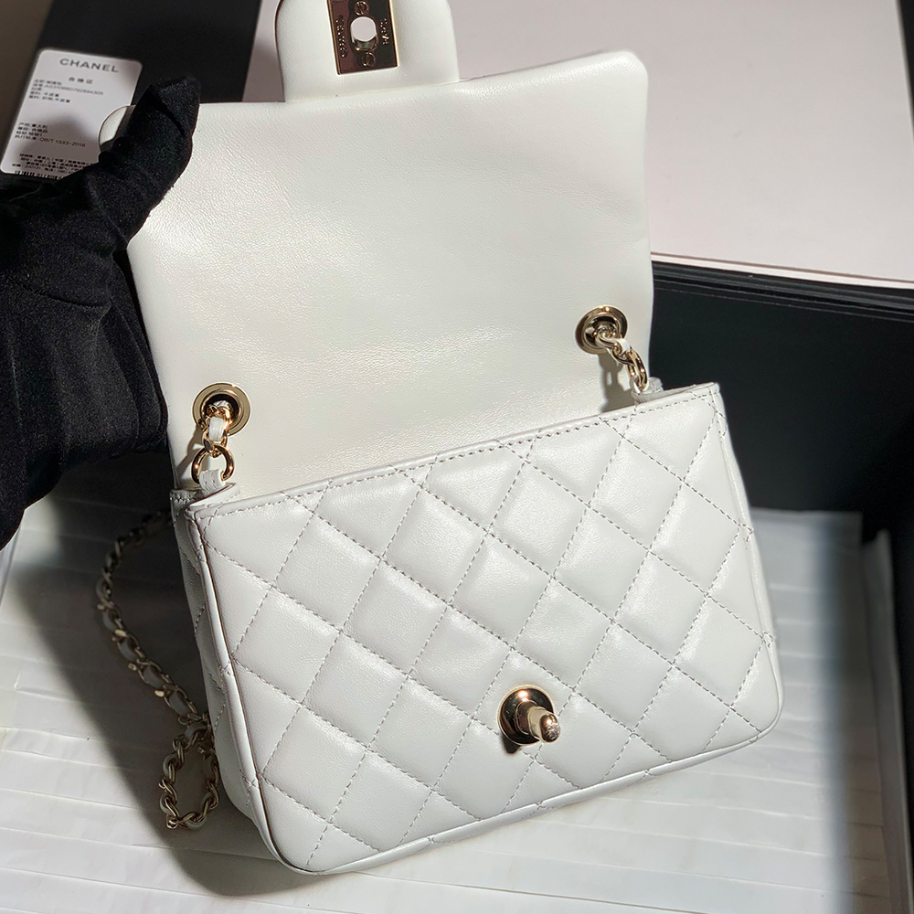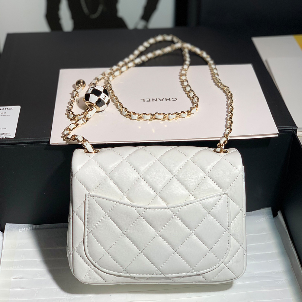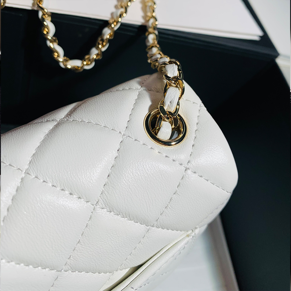 Chanel Classic Flag Bag Pearl Crush Mini Square Flap Bag White Light Gold Hardware