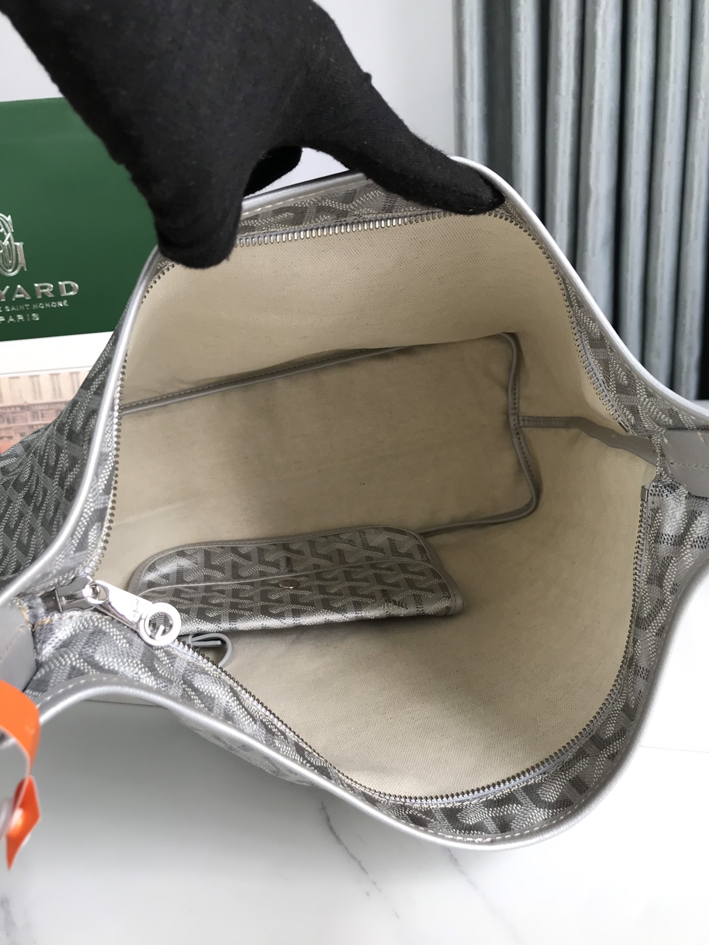 DetailThe Bohème Hobo bag epitomizes lightness, flexibility, and safety thanks to its zip closure. It is very comfortable as a shoulder bag thanks to its wide handle. It also features the emblematic removable pouch that closes with a snap fastener.Brand: GoyardSize: W27 x H42 x D15 cmWeight: 330 g