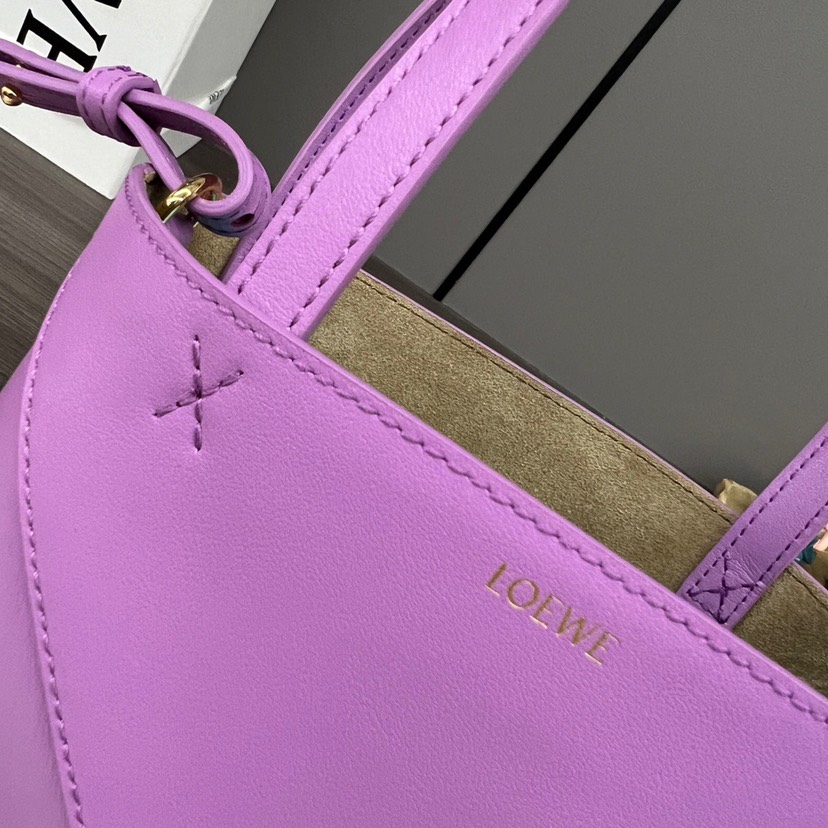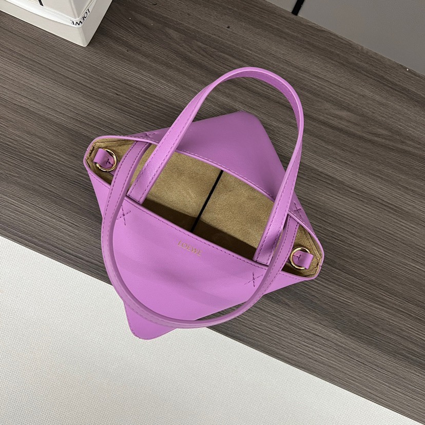 Loewe Mini Puzzle Fold Tote in shiny calfskin Purple