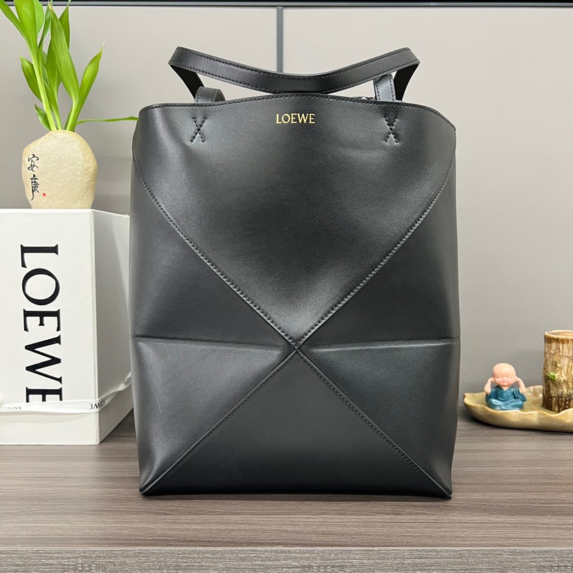 Loewe Puzzle Fold Tote in shiny calfskin Medium Black