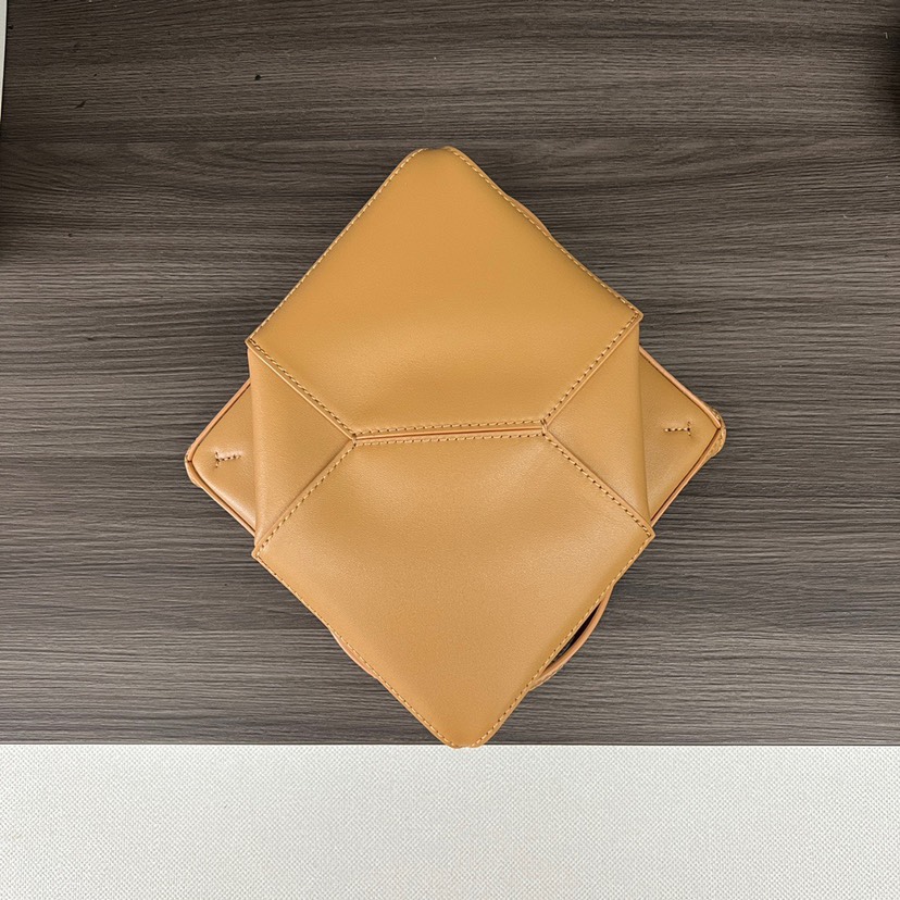 DetailThe Puzzle Fold Tote takes the iconic bag’s signature geometric lines and reimagines them in graphic and architectural panels that allow the bag to fold completely flat, making it the perfect travel companion. Soft, lightweight and inventively crafted, it is finished with discreet LOEWE branding. This mini version is crafted in shiny calfskin.Shoulder, crossbody or hand carryDetachable and adjustable strapSuede liningGold embossed LOEWEMeasures: