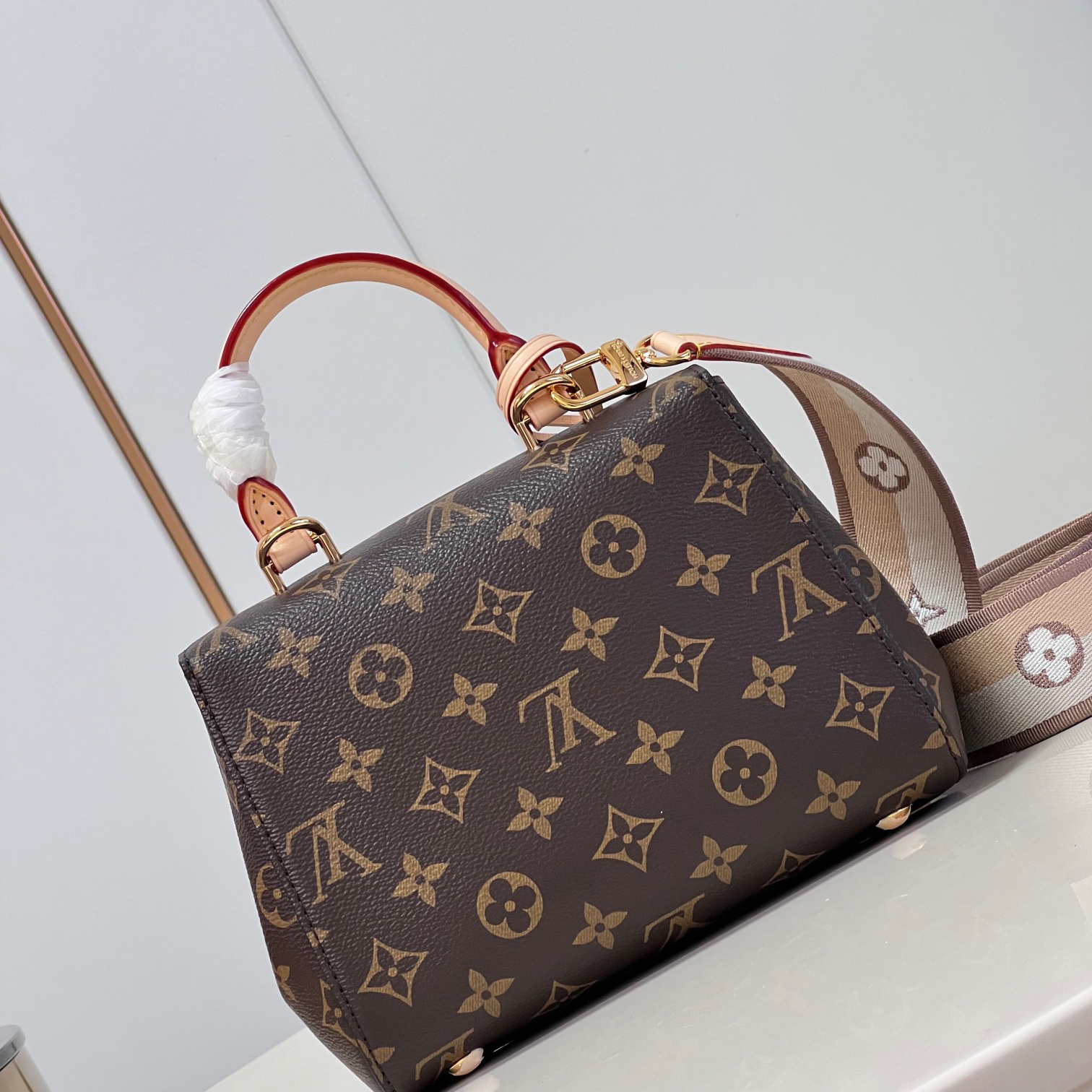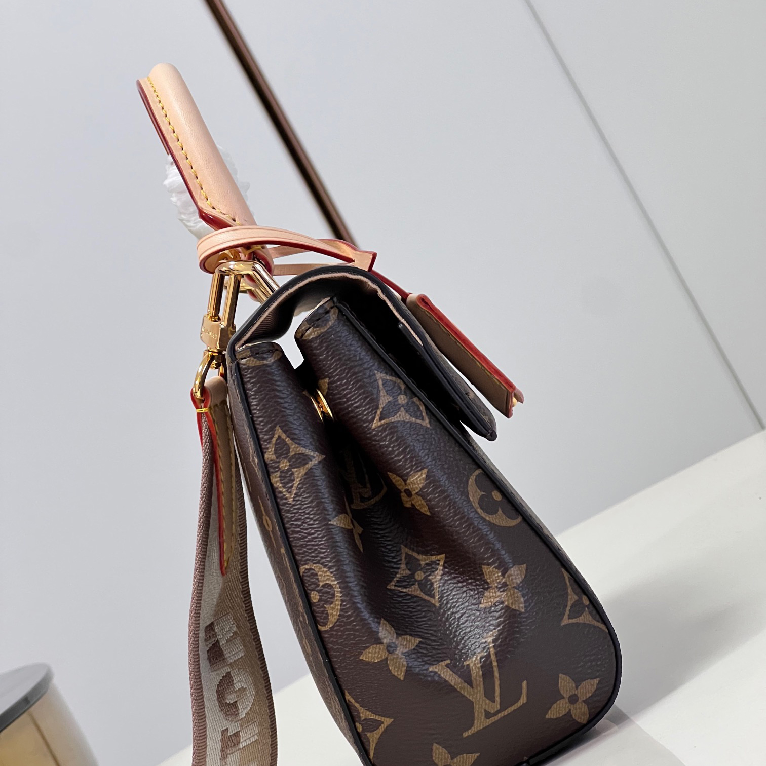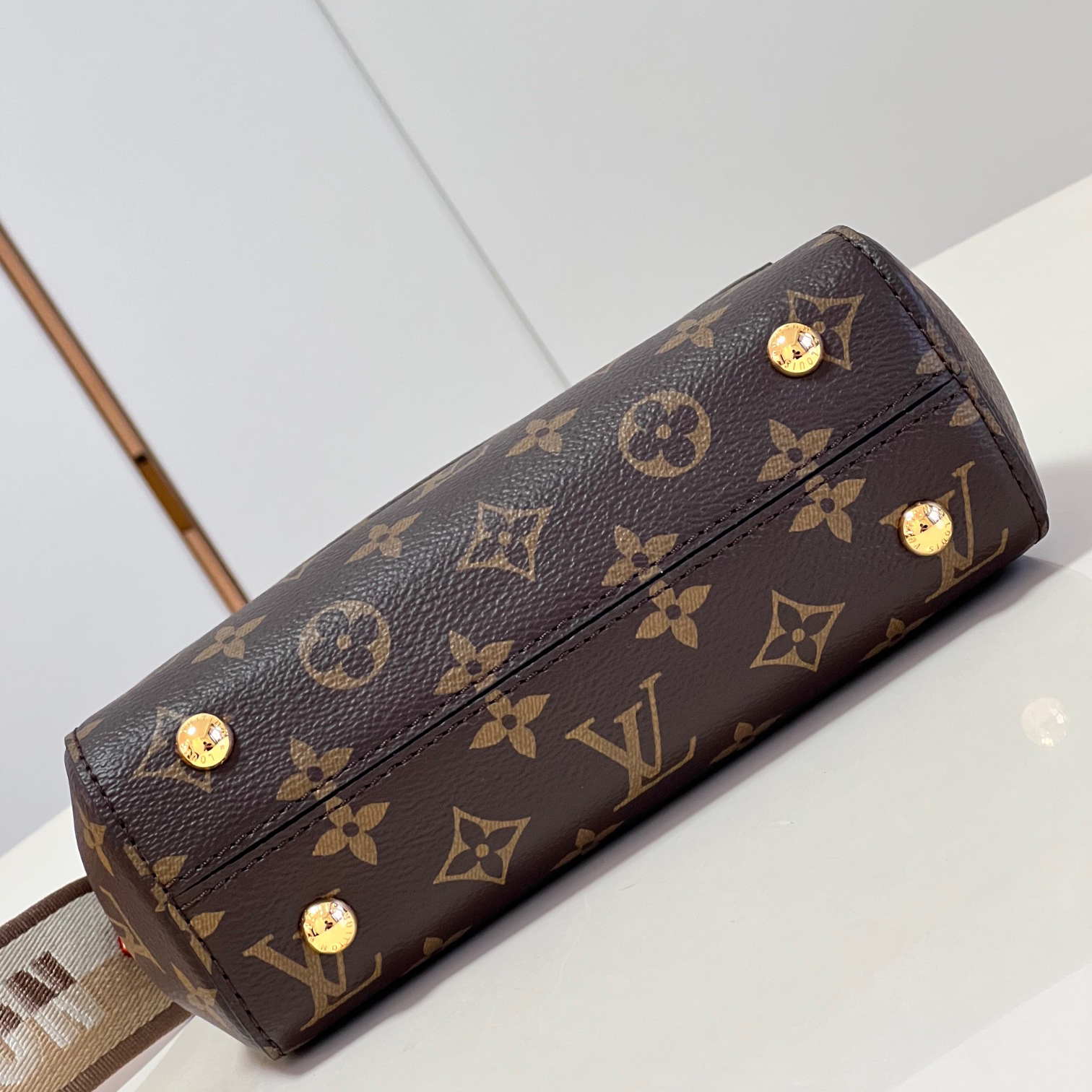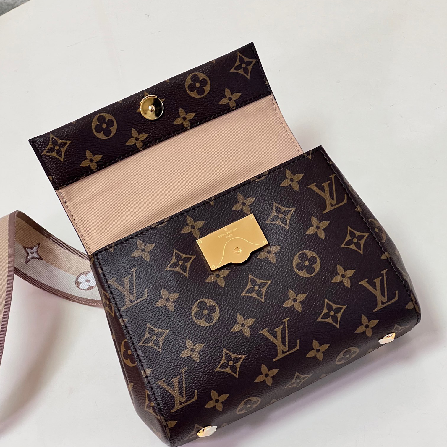 ● Fuchsia/Bordeaux Red ● Monogram coated canvas ● Natural cowhide-leather trim ● Textile lining ● Gold-color hardware ● Magnetic flap closure ● Key bell ● 2 inside flat pockets ● Inside zipped pocket ● 4 protective metal bottom studs ● Strap : Removable, not adjustable ● Strap Drop : 55.0 cm ● Handle : Single