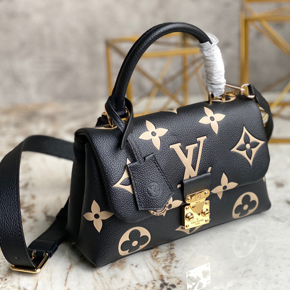 Detail· Size :24 x 17 x 8.5 cm (Length x height x width )· High Quality Version· With Box & Dust Bag· 35CM or above without box, if you need a box, please contact customer service.· Black / Beige· Embossed, grained cowhide leather· Cowhide-leather trim· Microfiber lining· Gold-color hardware· Central zipped pocket· Inside flat pocket· Key bell· Strap: Removable, adjustable· Strap Drop: 50.0 cm· Strap Drop Max.: 55.0 cm