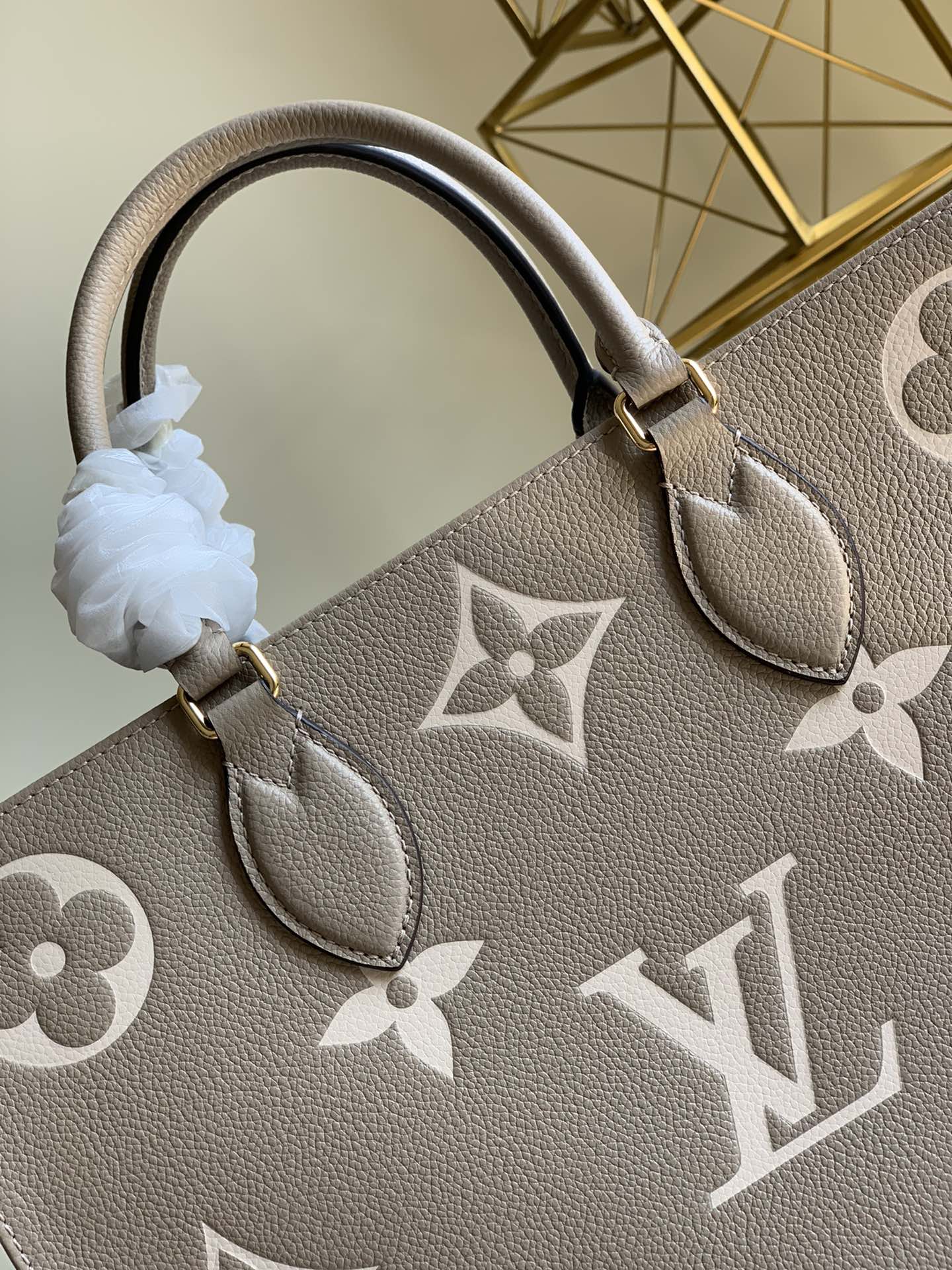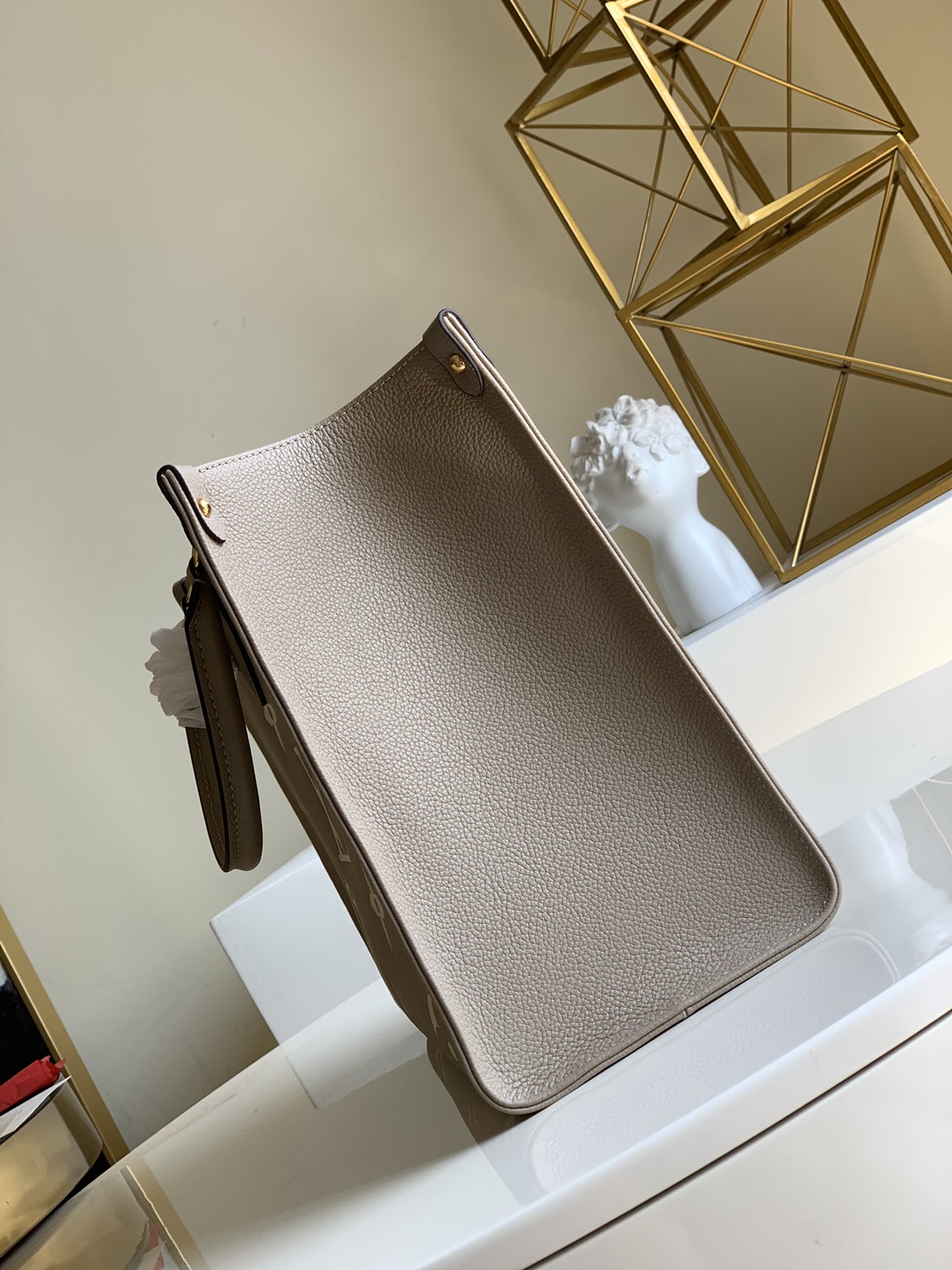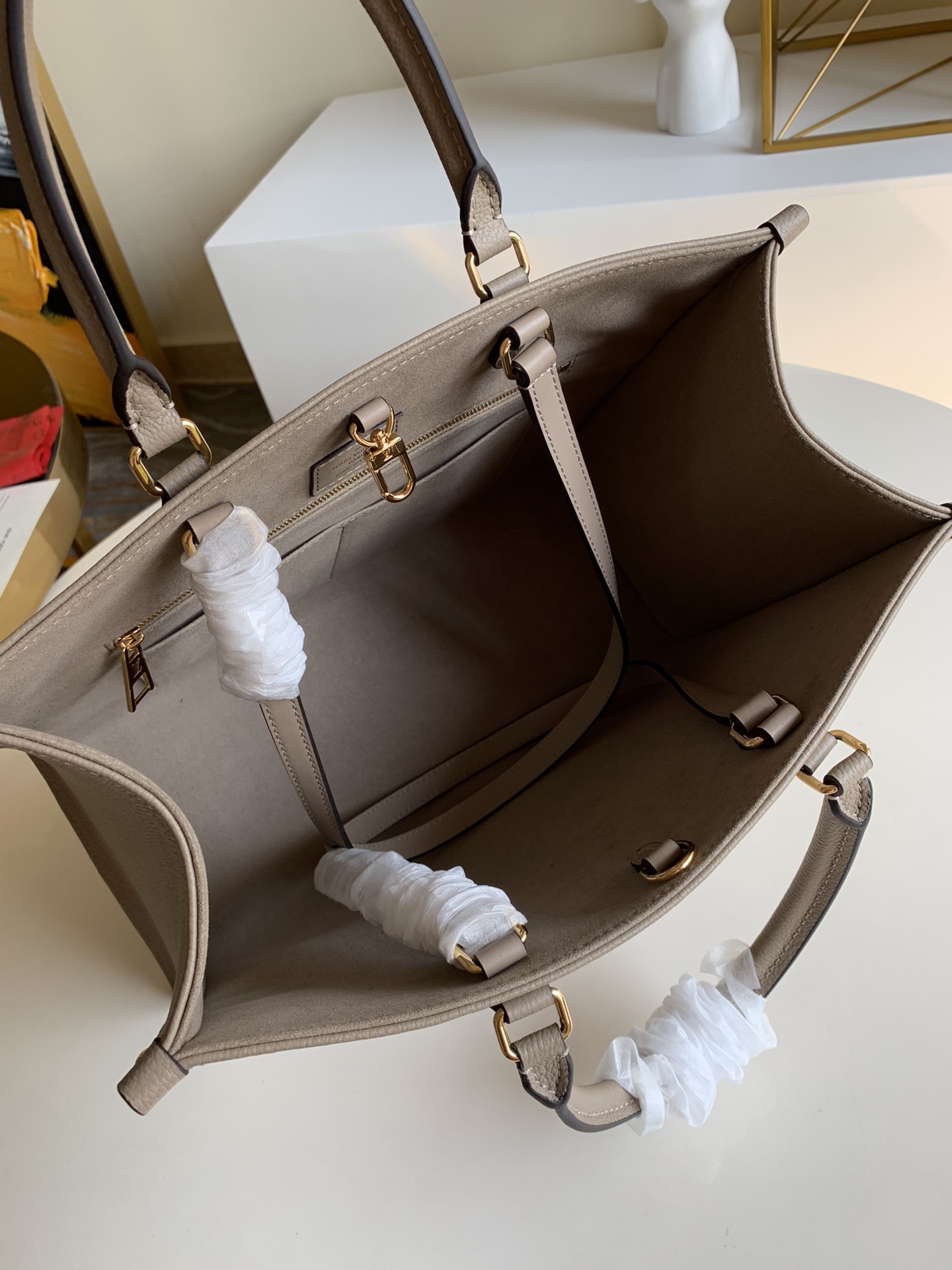 ● Tourterelle Beige/Cream ● Embossed grained cowhide leather ● Grained cowhide-leather trim ● Microfiber lining ● Gold-color hardware ● Inside flat zipped pocket ● Inside double pocket ● 2 long leather shoulder straps (drop: 24 cm) ● Handle : Double
