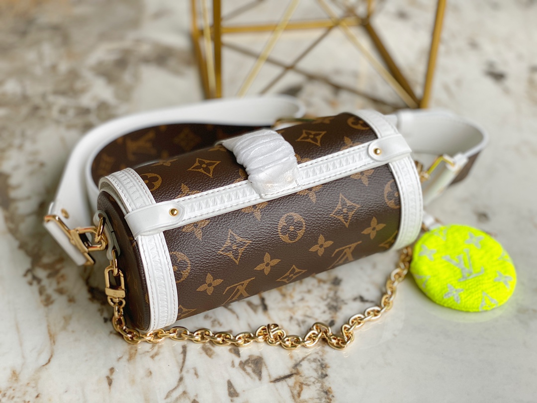 ● Monogram coated canvas ● Cowhide-leather trim ● Textile lining ● Gold-color hardware ● Round Zippy Coin Purse ● S-lock closure ● Strap: Removable, adjustable ● Strap Drop: 30.0 cm ● Strap Drop Max.: 52.0 cm ● Chain: Removable ● Chain Drop: 55.0 cm