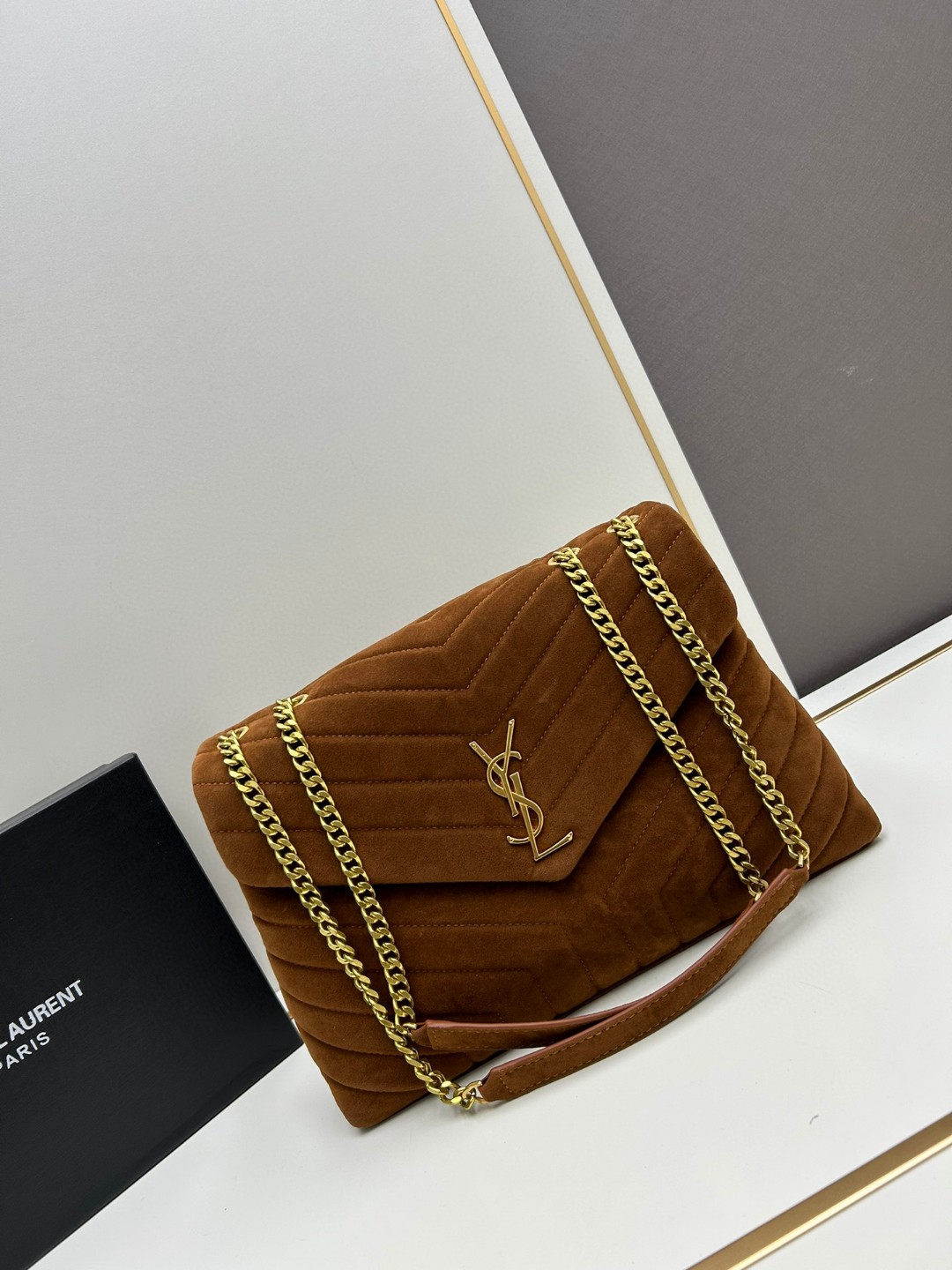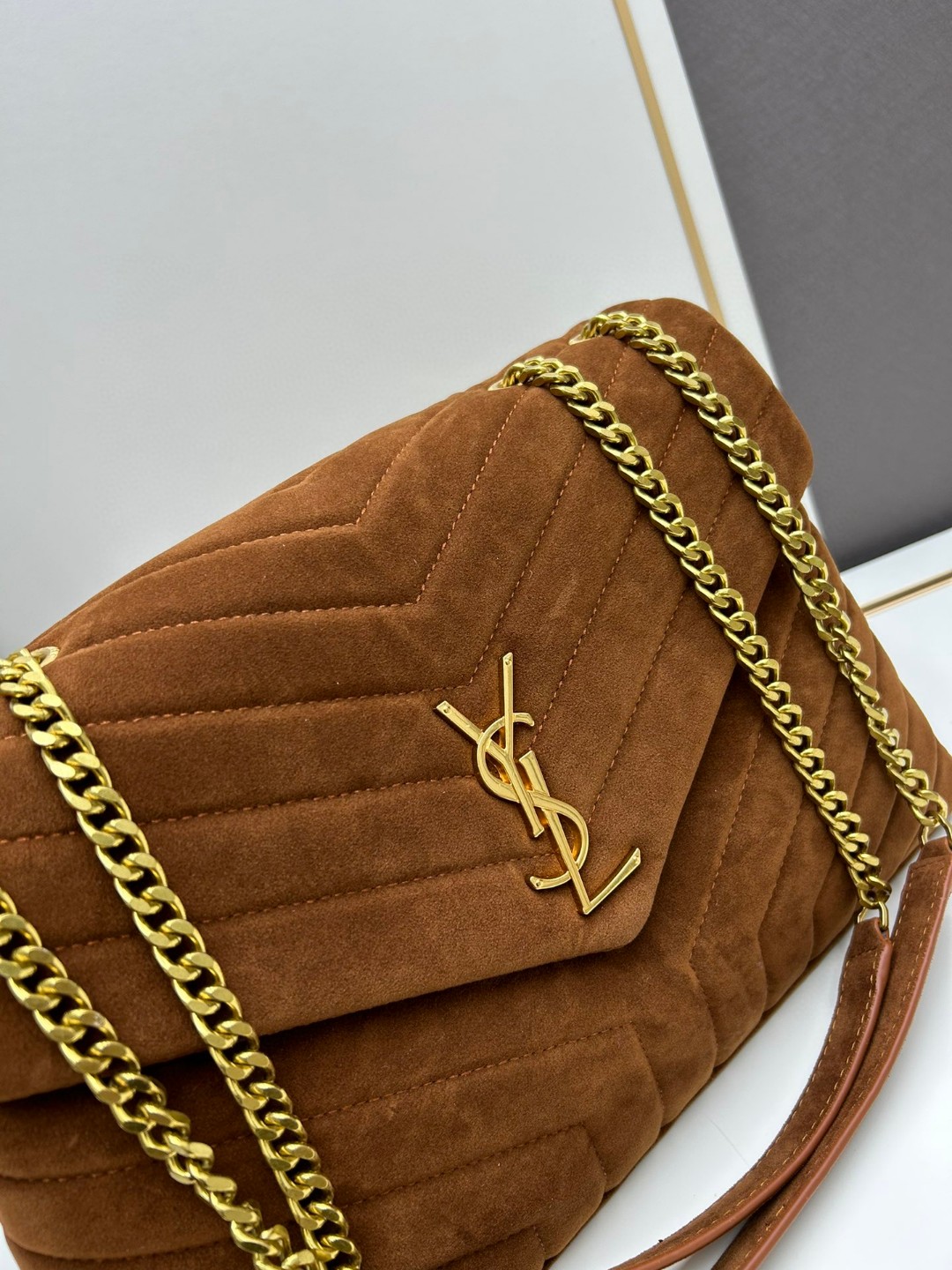 • Saint Laurent LOULOU Quilted Suede Bag