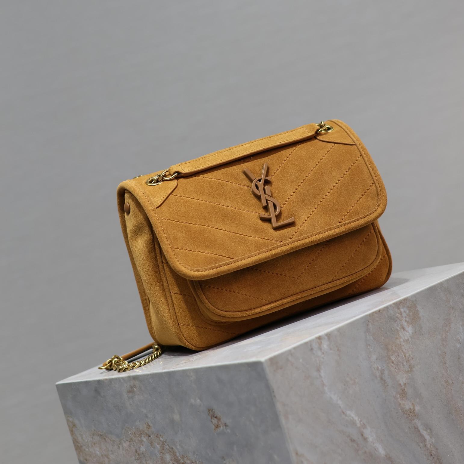 • Saint Laurent ySl Tan Suede Medium Niki Shoulder Bag
