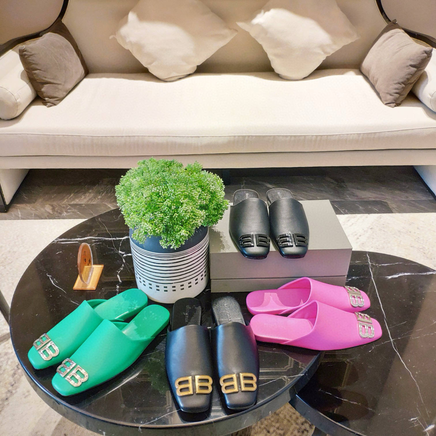 • Balenciaga Leather Round toe Slippers Slide Sandal