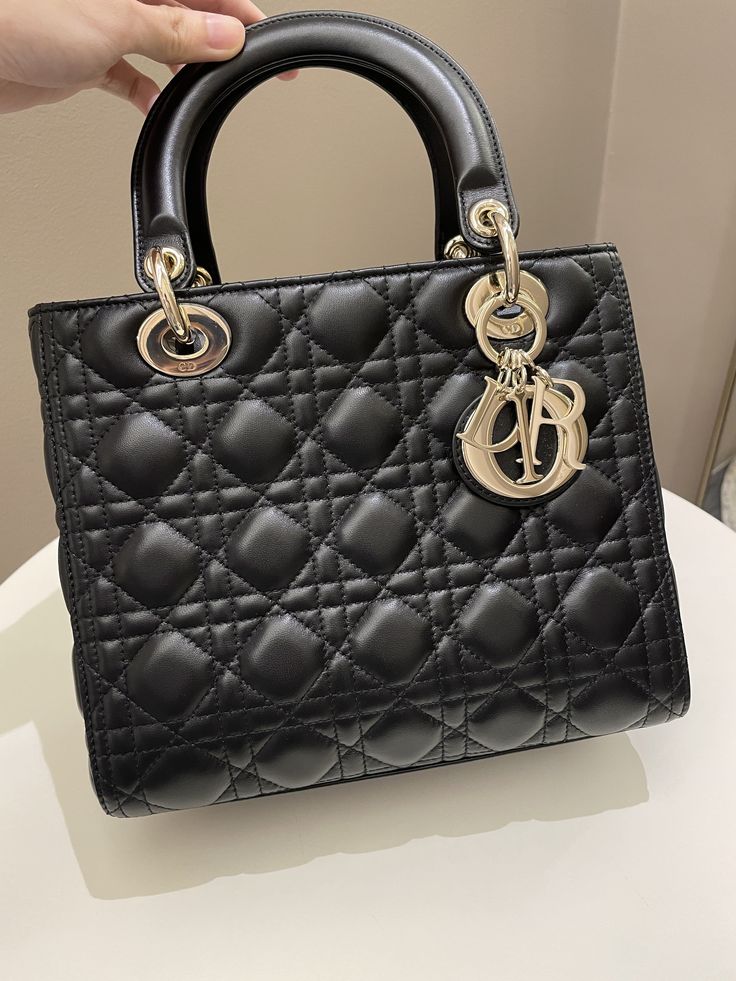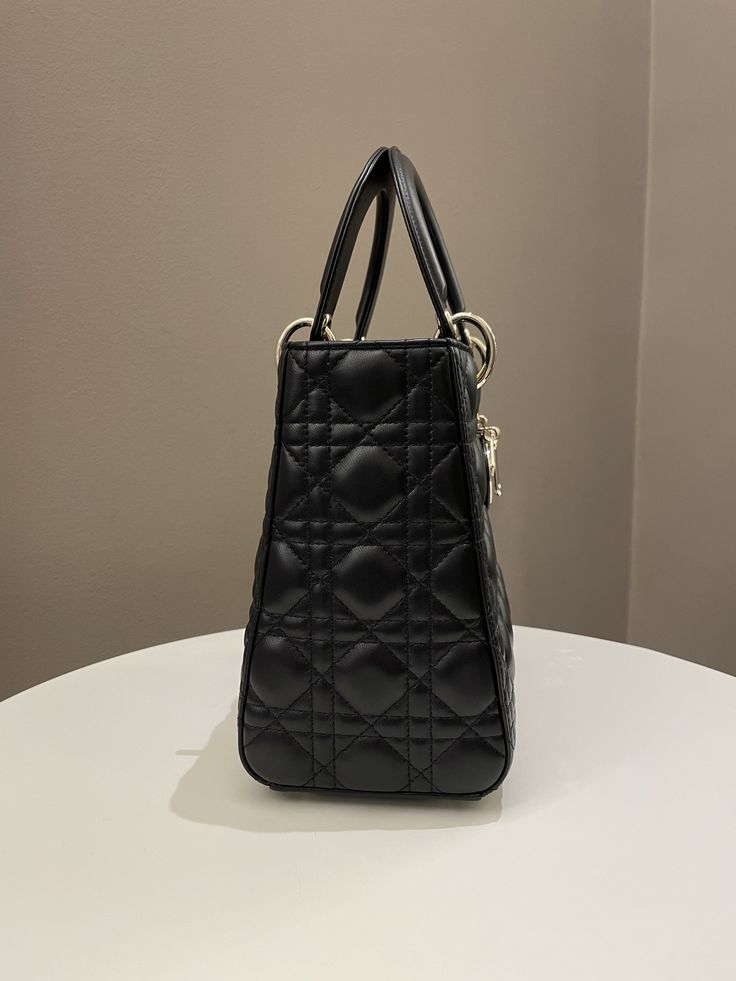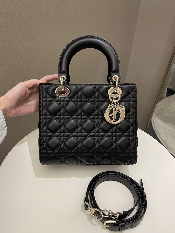 An iconic piece of the House, the Lady Dior handbag brings together the classic elements of Dior leather goods: classic Cannage rattan check stitching embellished with lambskin, rounded handles and a D.i.o.r charm. This layered piece is a symbol of couture sophistication and elegance. The handbag reinterprets the classic with a charm, wide shoulder strap and soft structure for a more stylish and distinguished look. We have perfectly reproduced this outstanding handbag in limited quantities, so buy now if you like it!