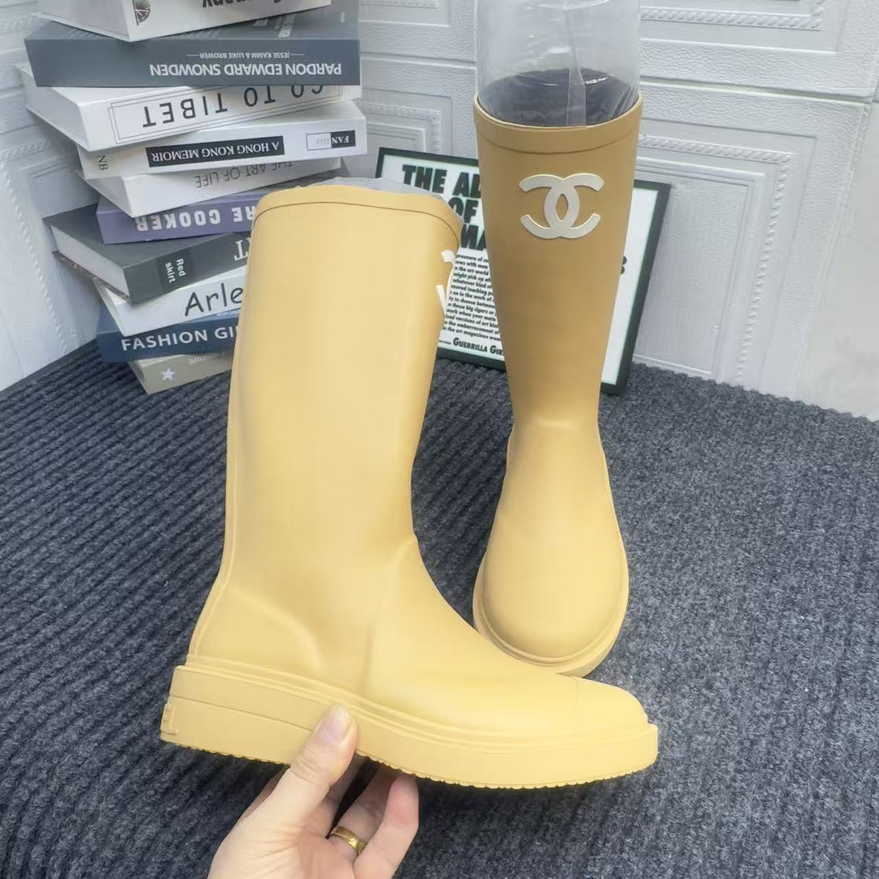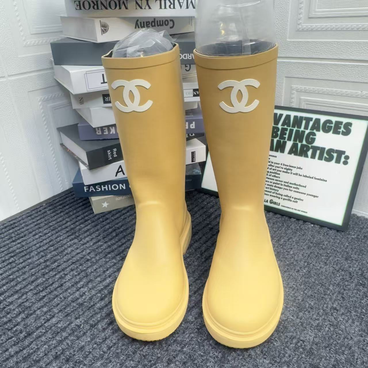 Sculpted from high‑performance waterproof rubber, this ankle‑high boot balances functionality with fashion. The glossy Double‑C logo etched at shaft front serves as a signature accent, underscoring minimalist elegance.