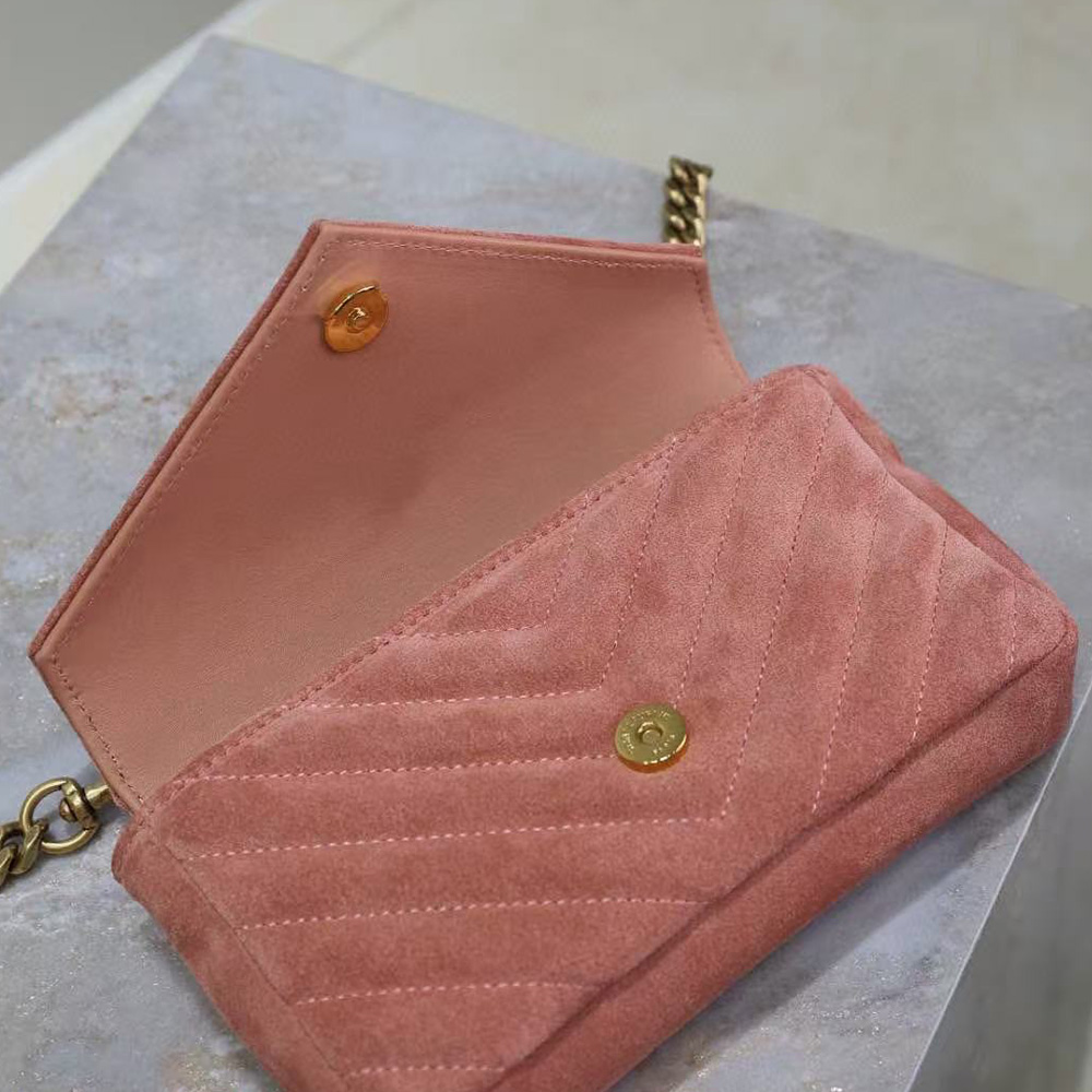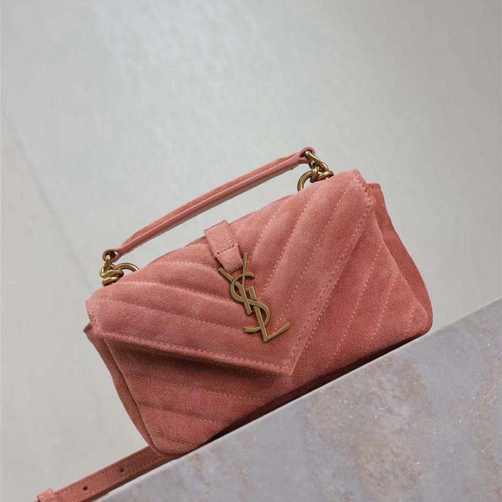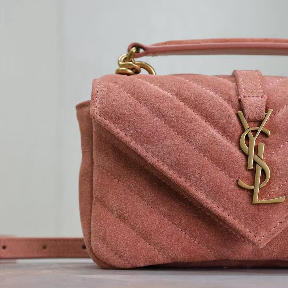 A miniature COLLEGE bag, embellished with the Le Cassandre motif and V-shaped quilted topstitching.This versatile piece features a top handle and a detachable leather and chain shoulder strap, allowing it to be worn two ways.