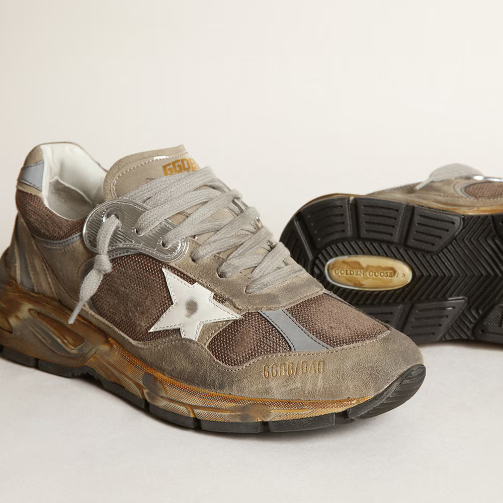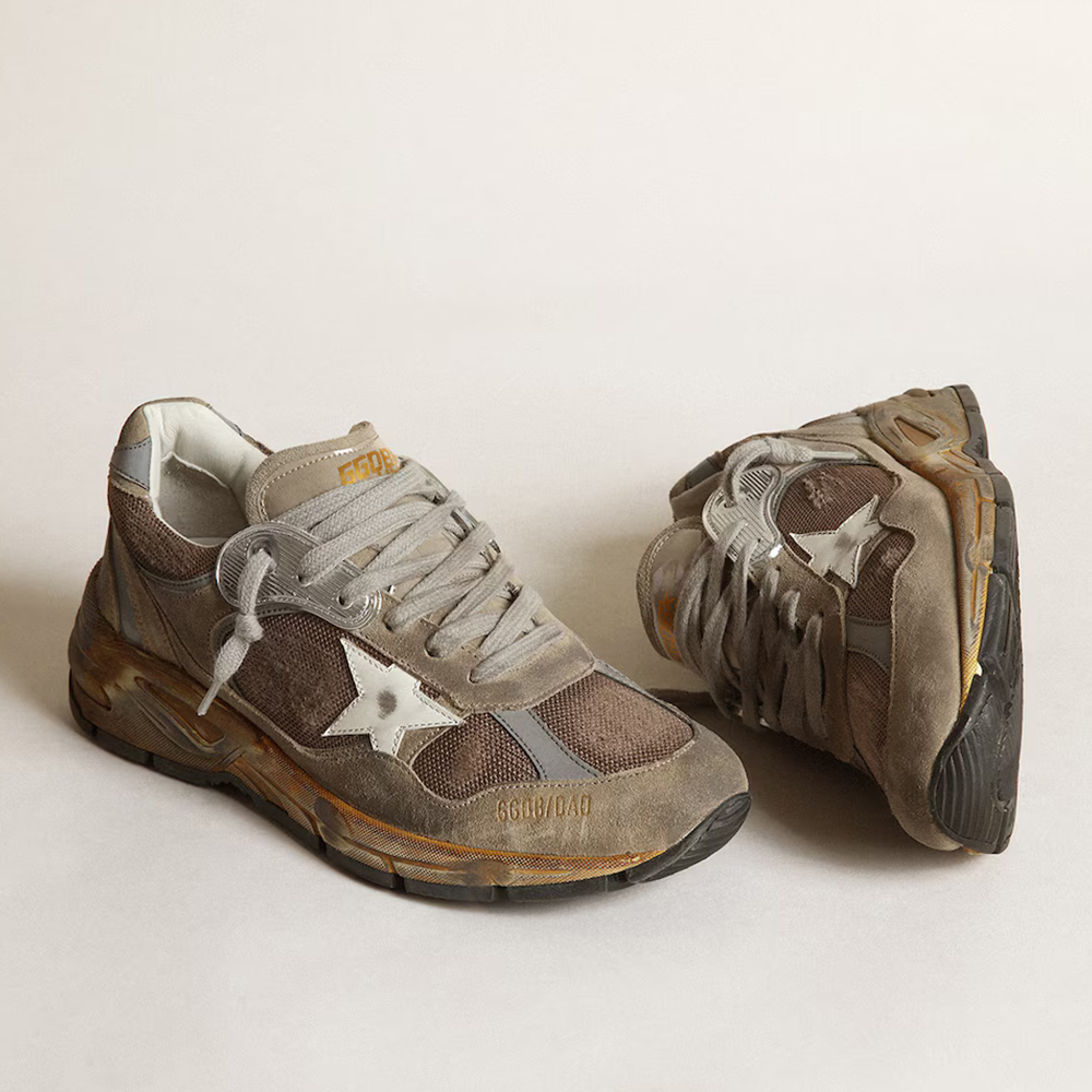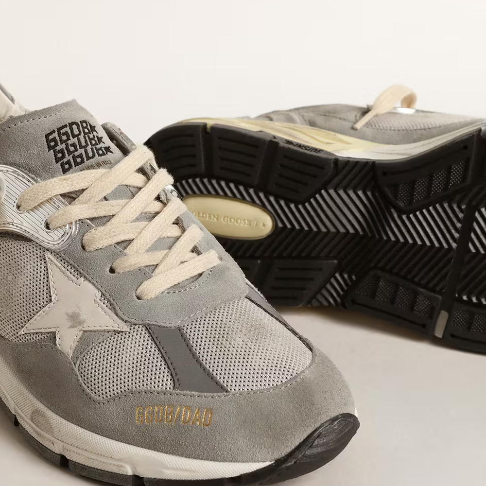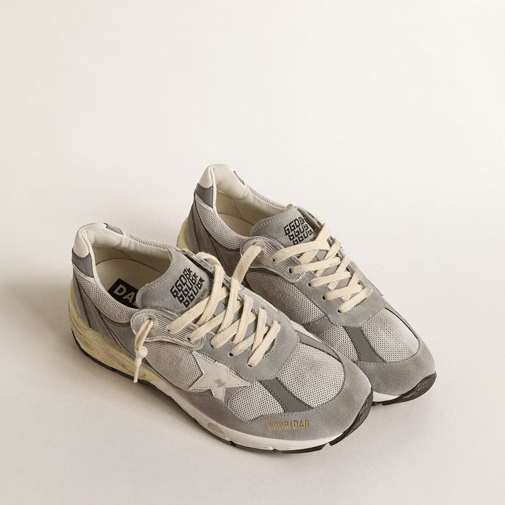 Golden Goose Dad-Star Shoes in Dove Gray Mesh and Suede