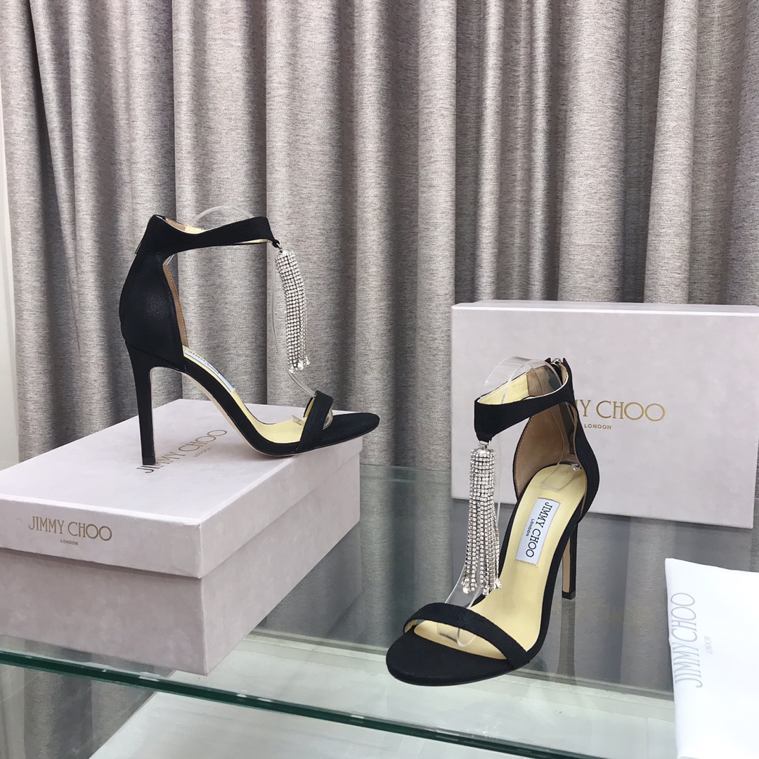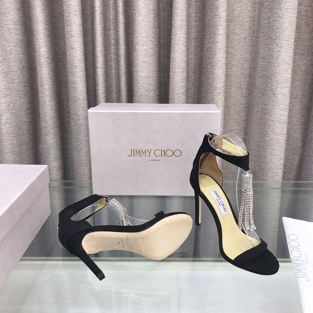 Jimmy Choo 10CM Fine Heel Velvet Black Slide Sandal