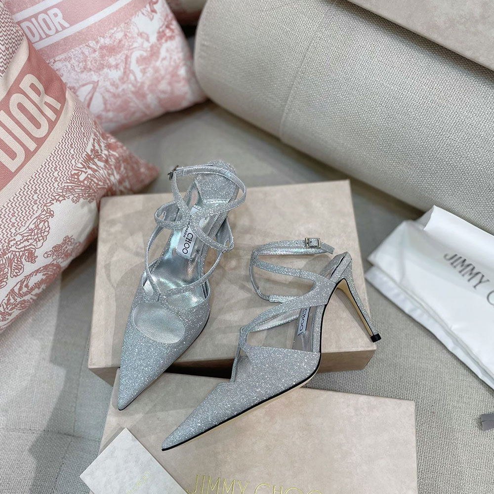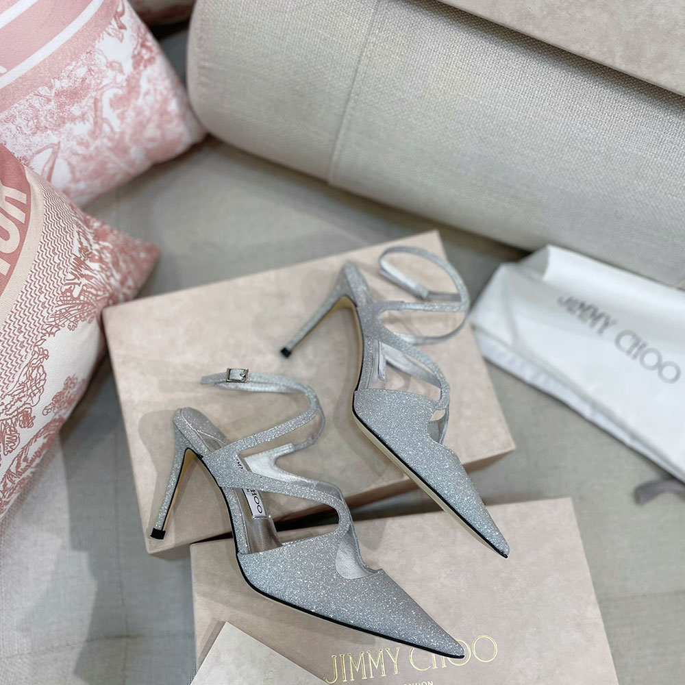 Jimmy Choo 8.5CM Slim Heel Strap Tip Slide Sandal