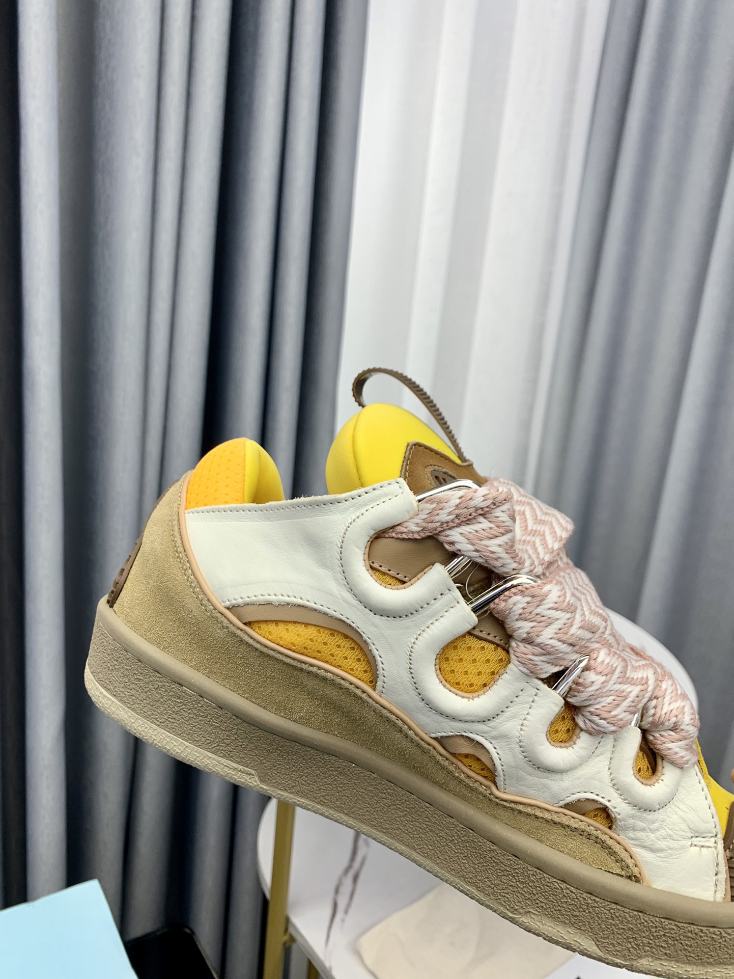 DetailIf you have any doubts about the shoe size, please consult our website's customer service before placing your order. Kindly note that items purchased in the wrong size cannot be returned or exchanged. Thank you for your understanding.The Curb is a sneaker inspired by the 90s, with a confident design and exaggerated dimensions. Made in nappa calfskin, suede and mesh, this elaborately constructed shoe stands out for its extraordinary comfort thanks to the rounded shape, padded tongue, and metallic eyelets.