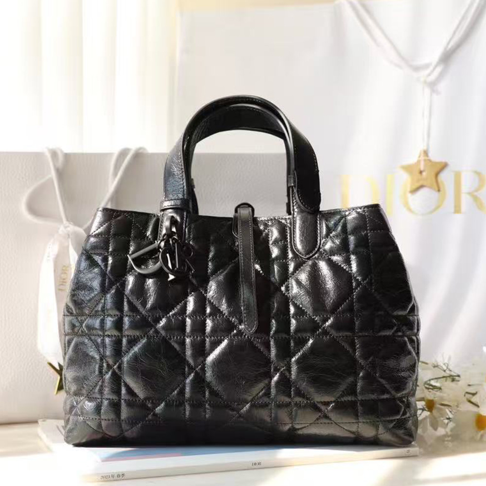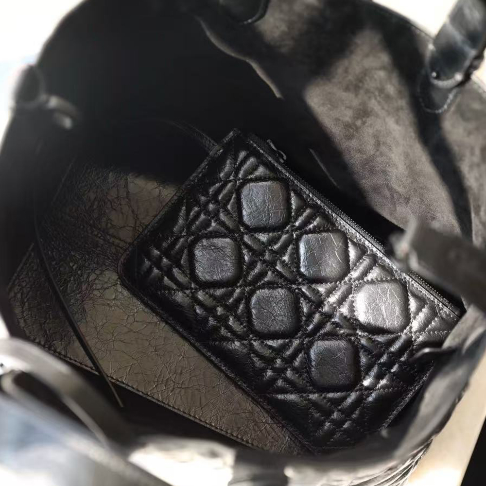 Dior Medium Toujours Bag Black Macrocannage Crinkled Calfskin