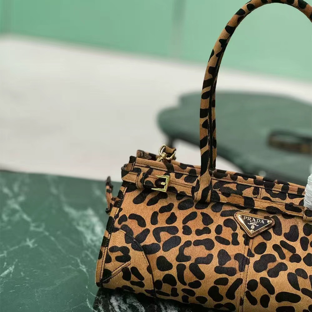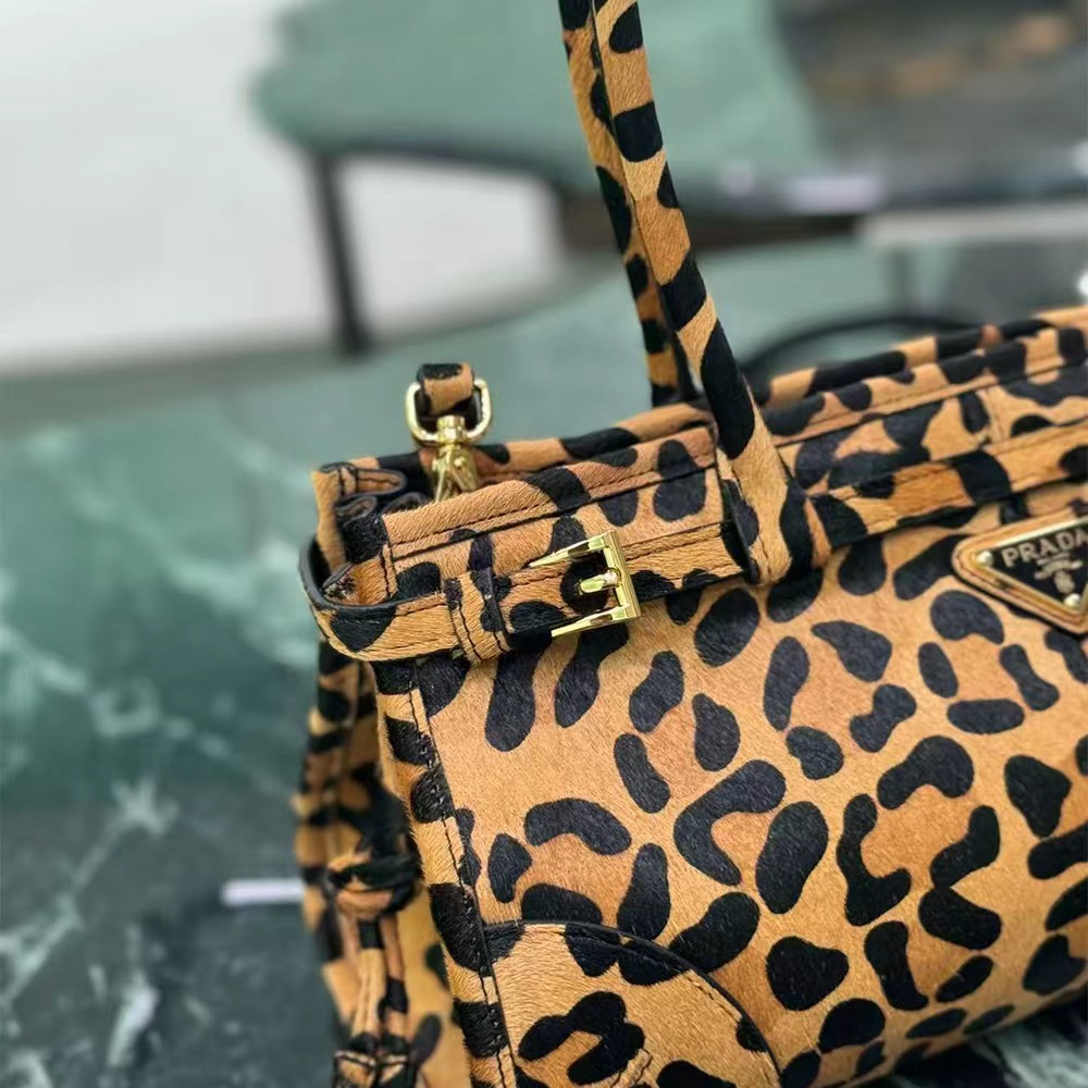 A symbol of innovation, unconventional spirit and a timeless attitude, the Bonnie bag expresses Prada's dialogue with modernity. The style is presented in a versatile and compact mini format, enriched with distinctive metal buckles and laces on the sides. The animal print leather gives the design unmistakable style.