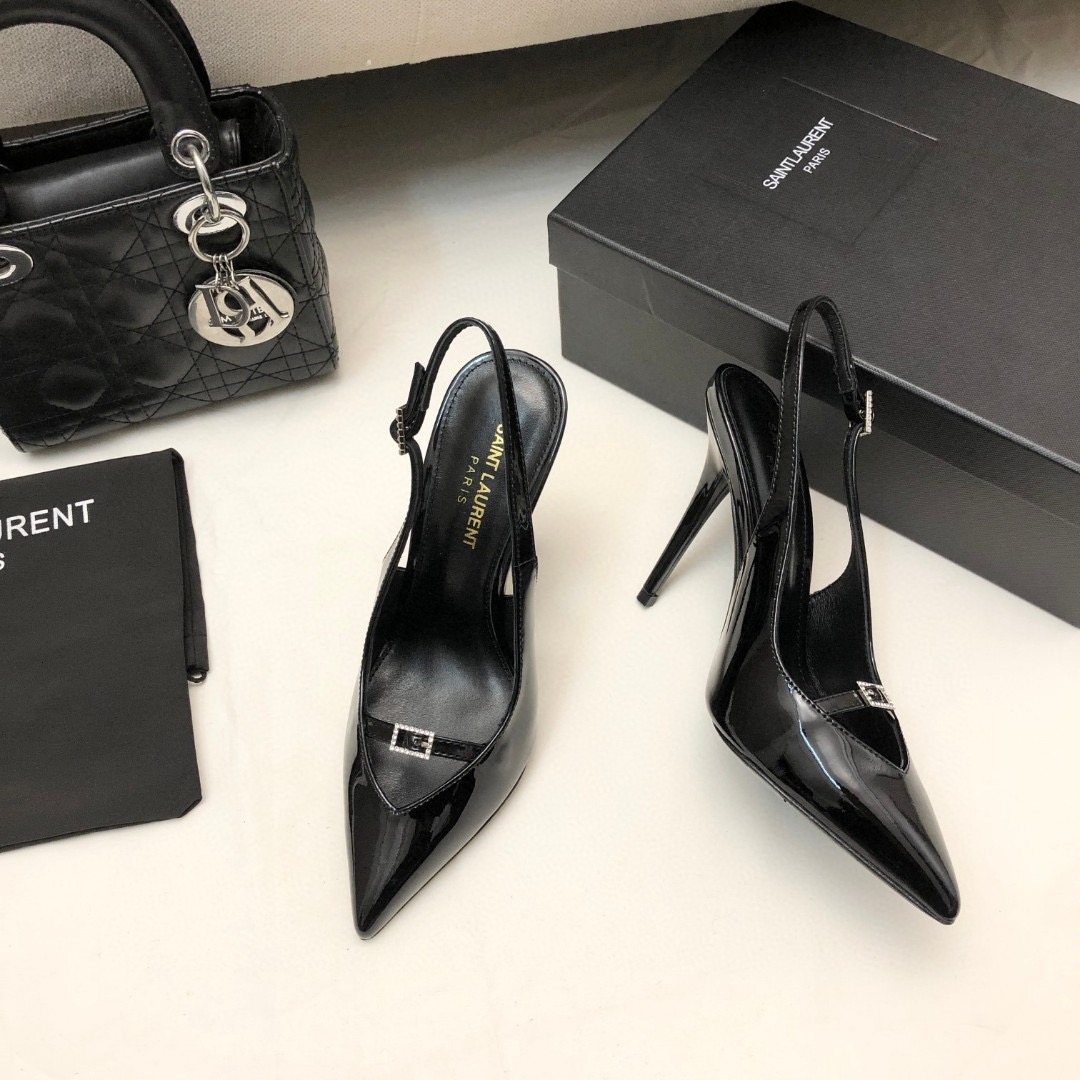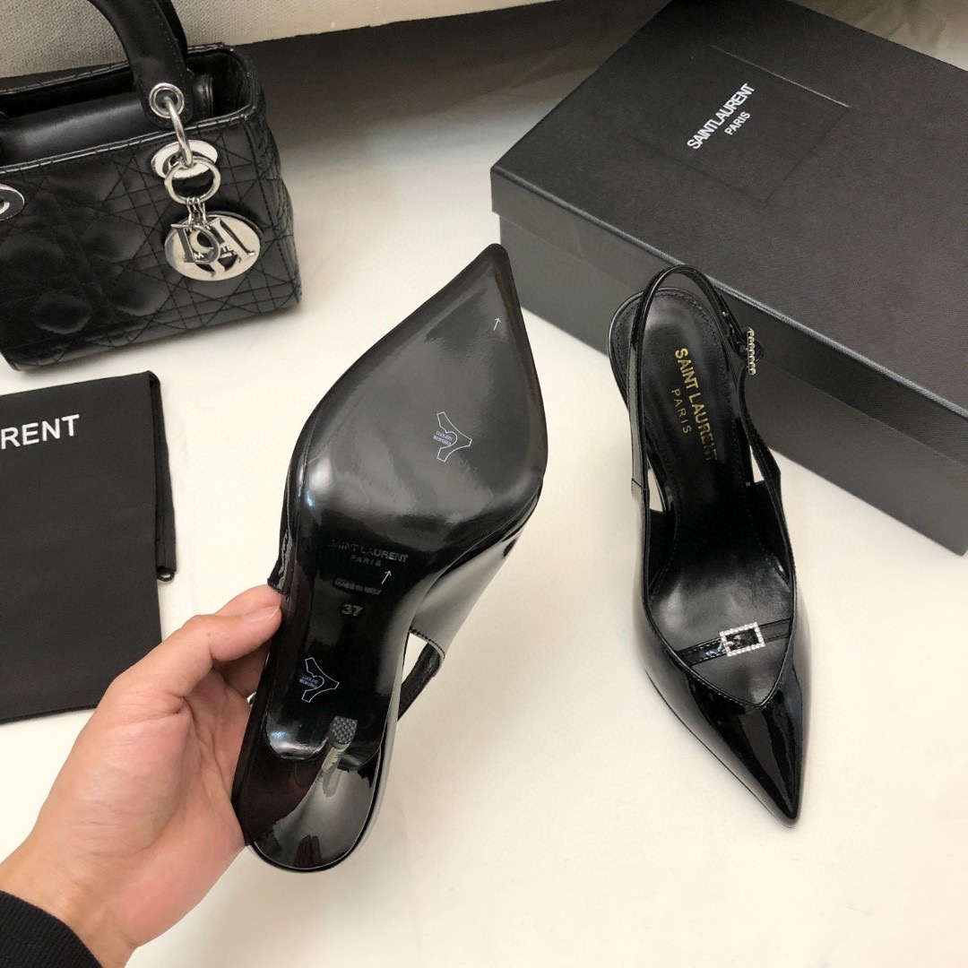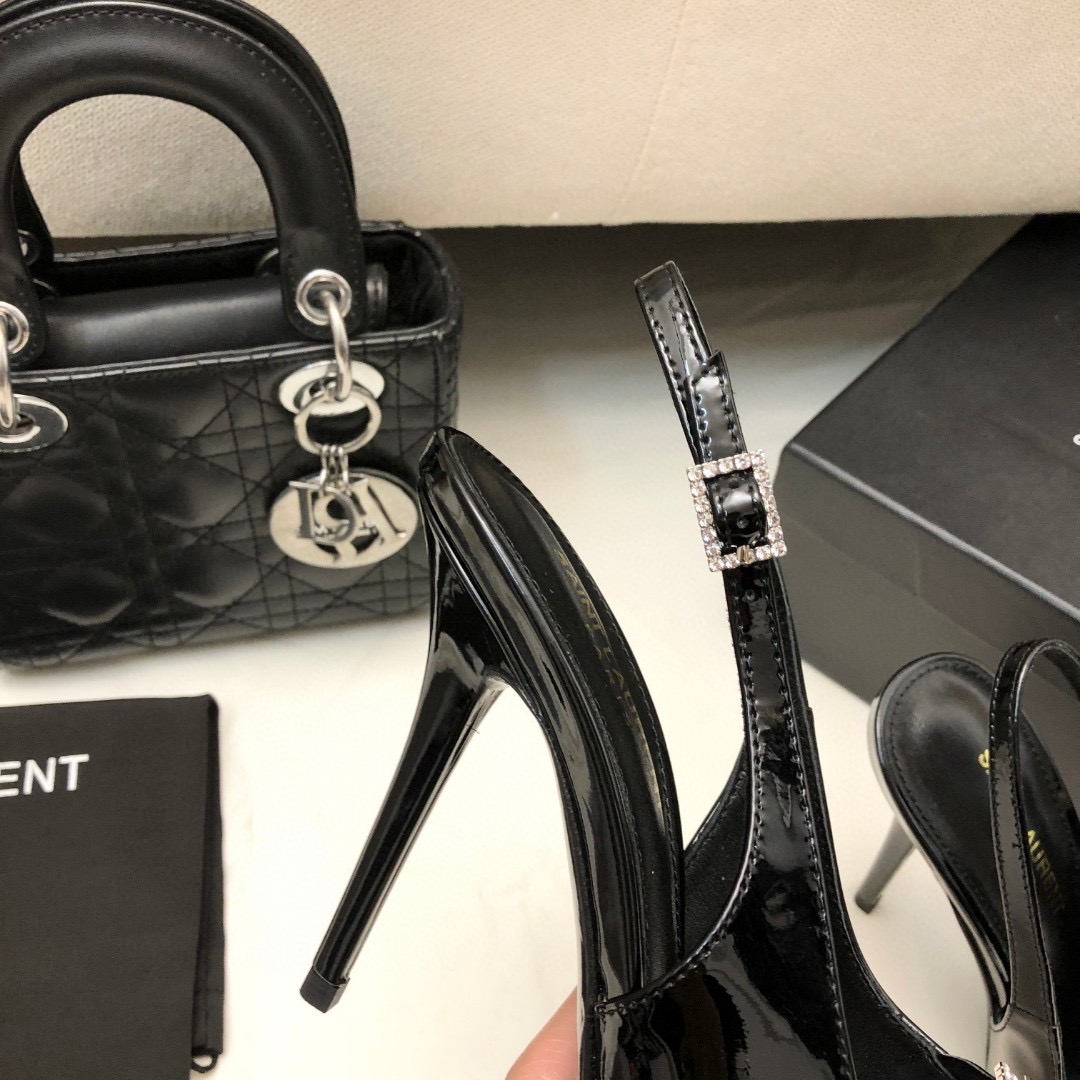 • Saint Laurent YSL Patent Leather Buckle High Heel 10.5CM Slide Sandal
