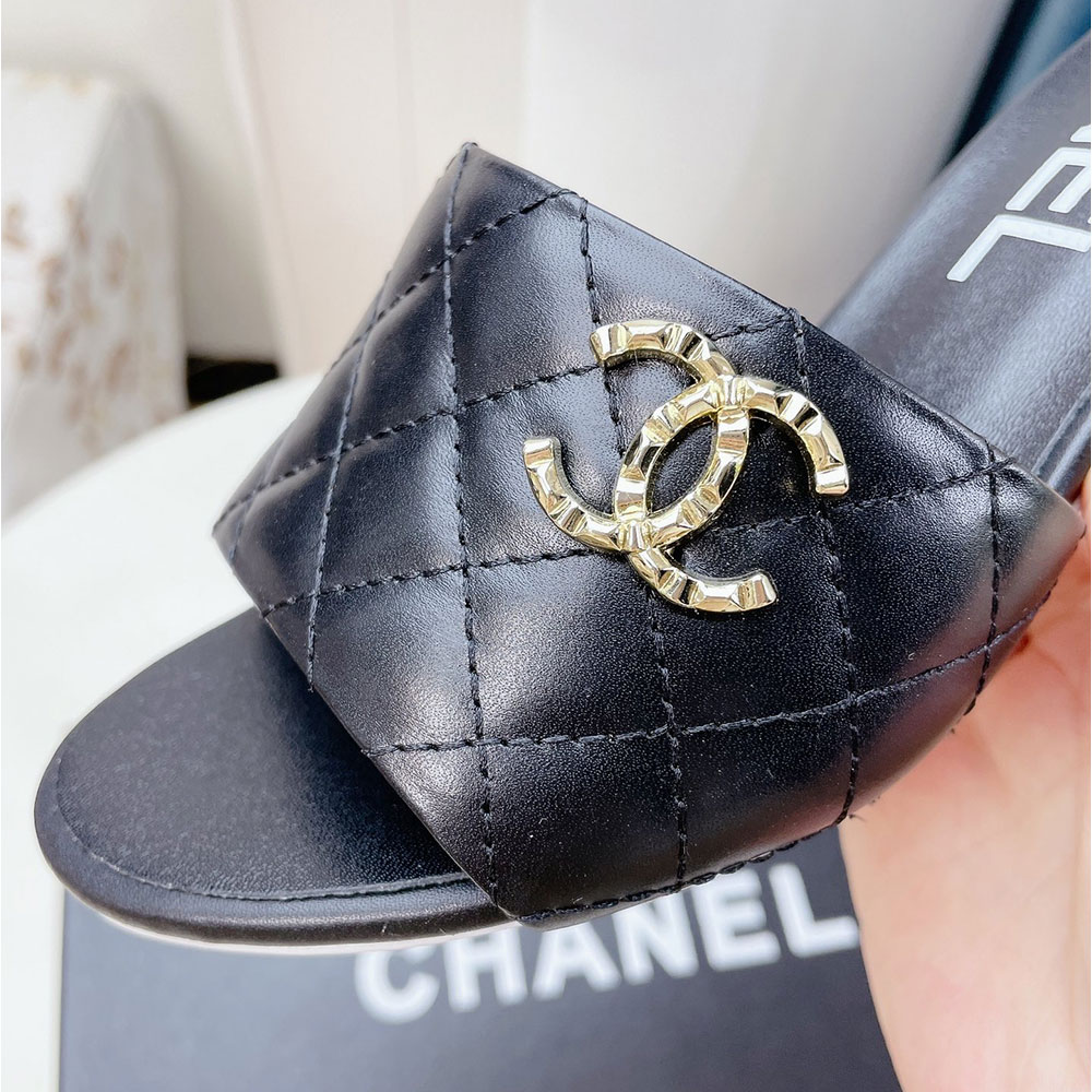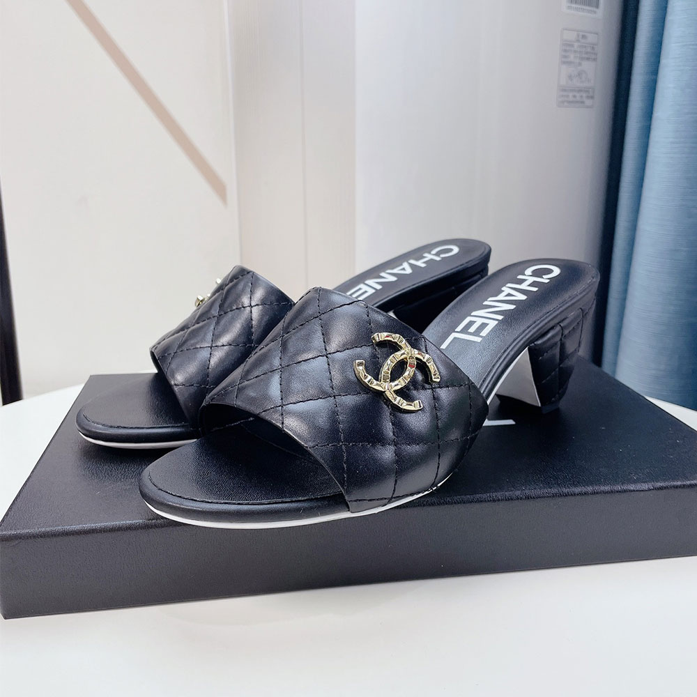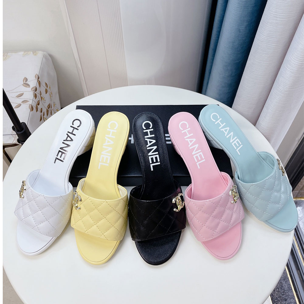 Chanel Sheep-leather Fashion High-heeled Slippers Slide Sandal
