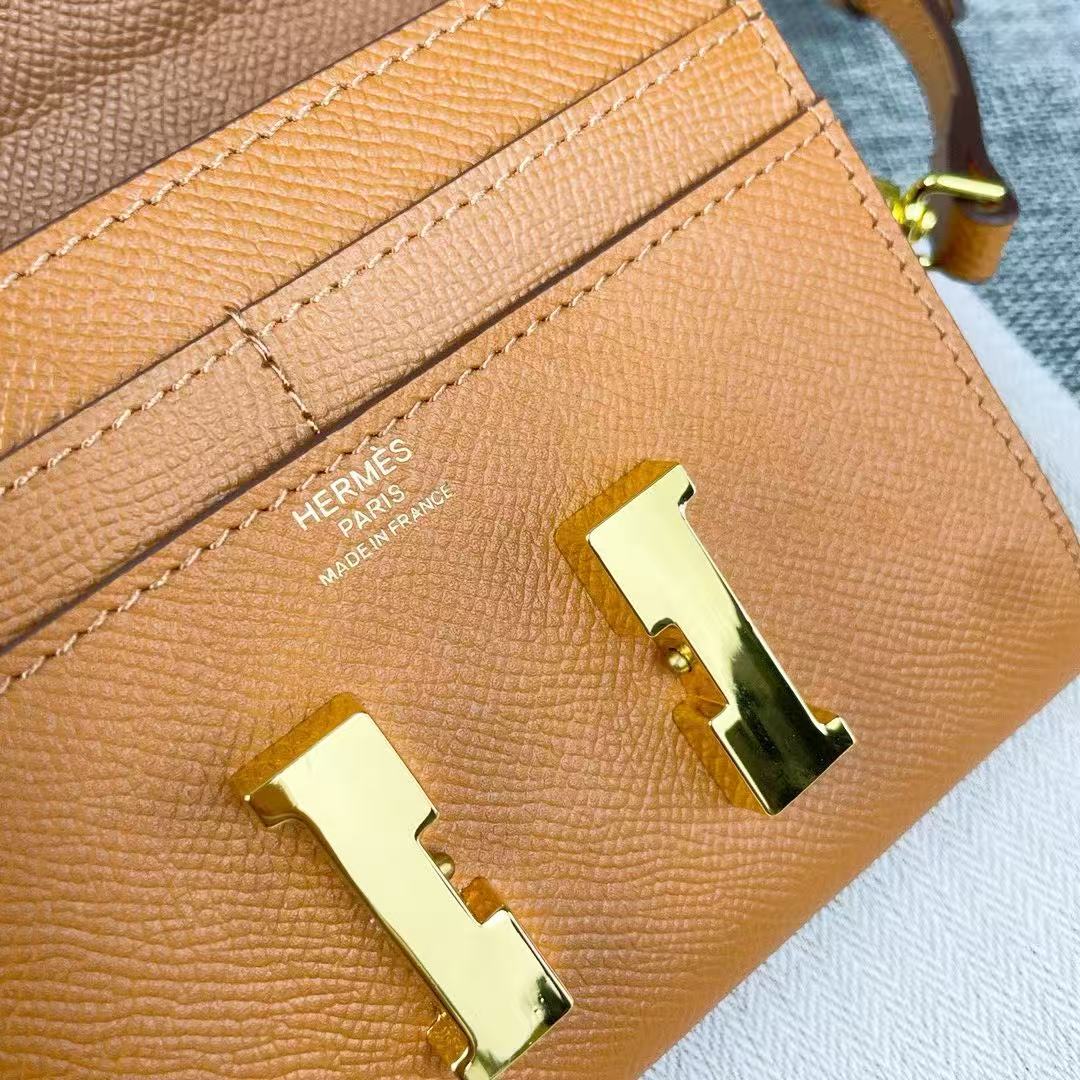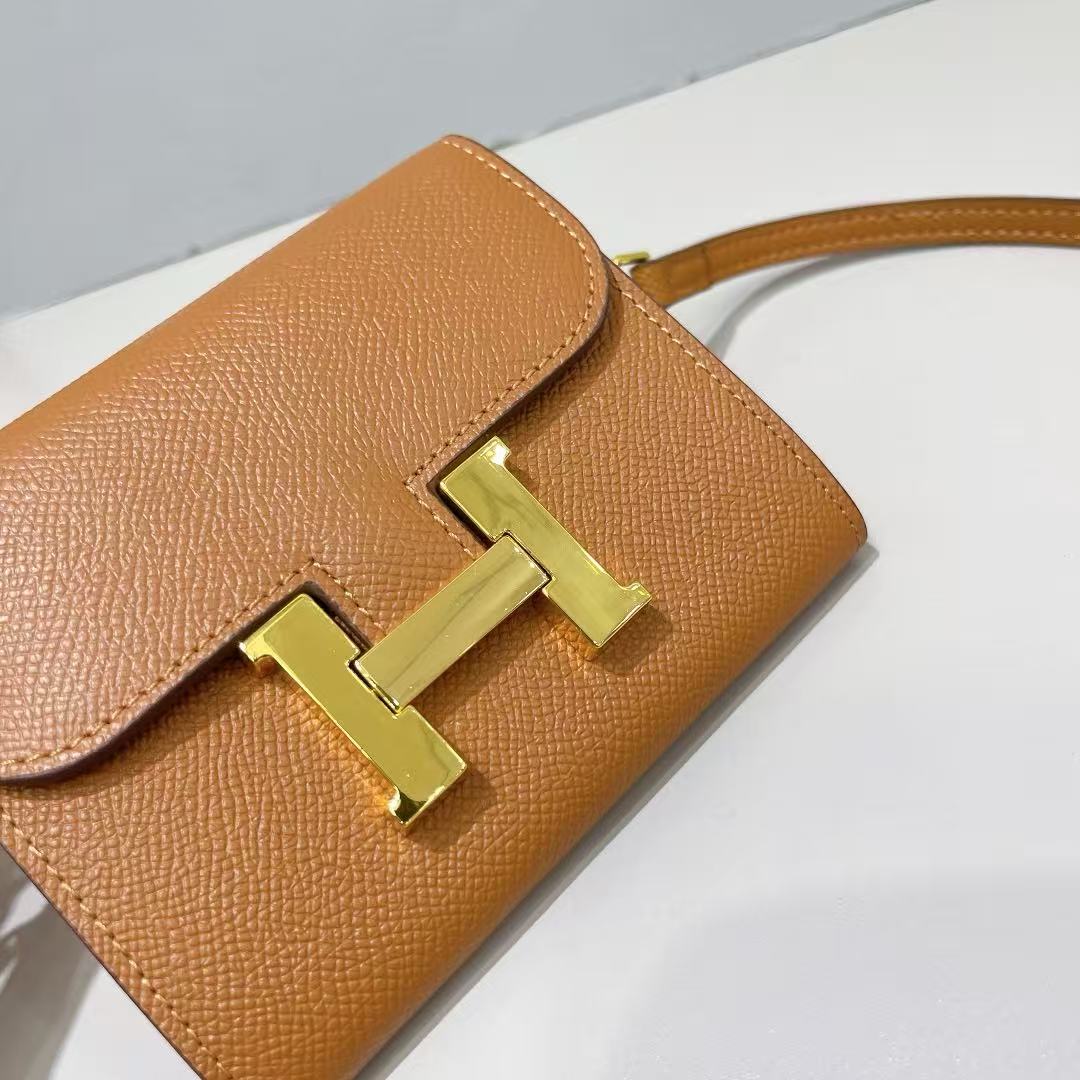 This Hermès-inspired small chain bag, highlighted by the iconic "H" metal clasp, exudes simplicity and elegance. Crafted from premium leather for a smooth feel, the bag's structure and polished metal hardware create a refined and durable design.