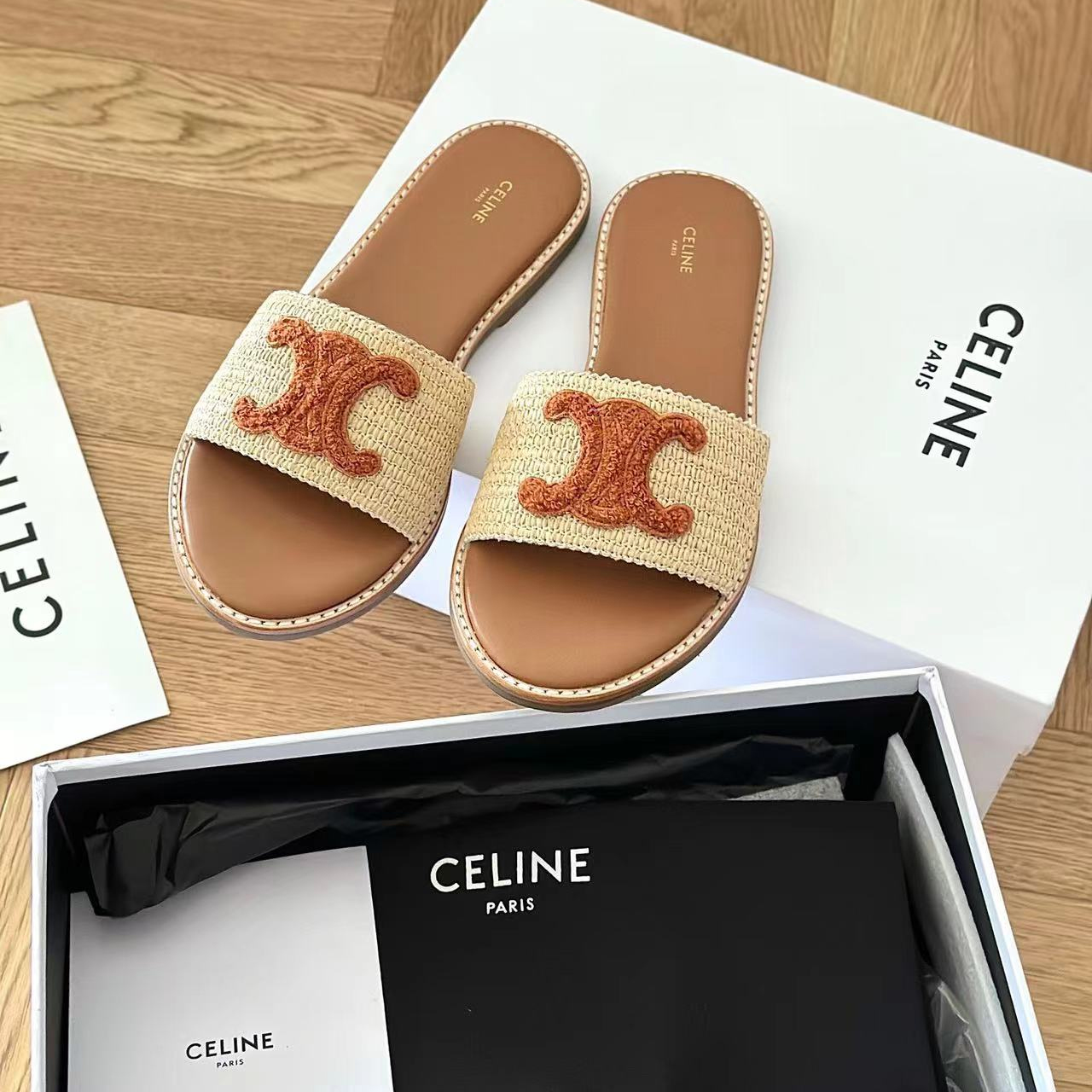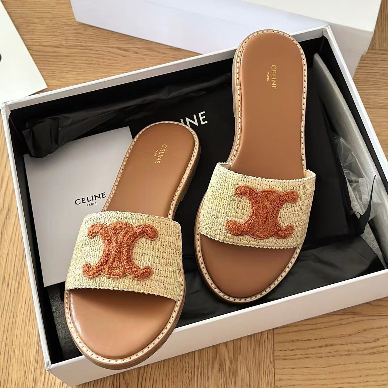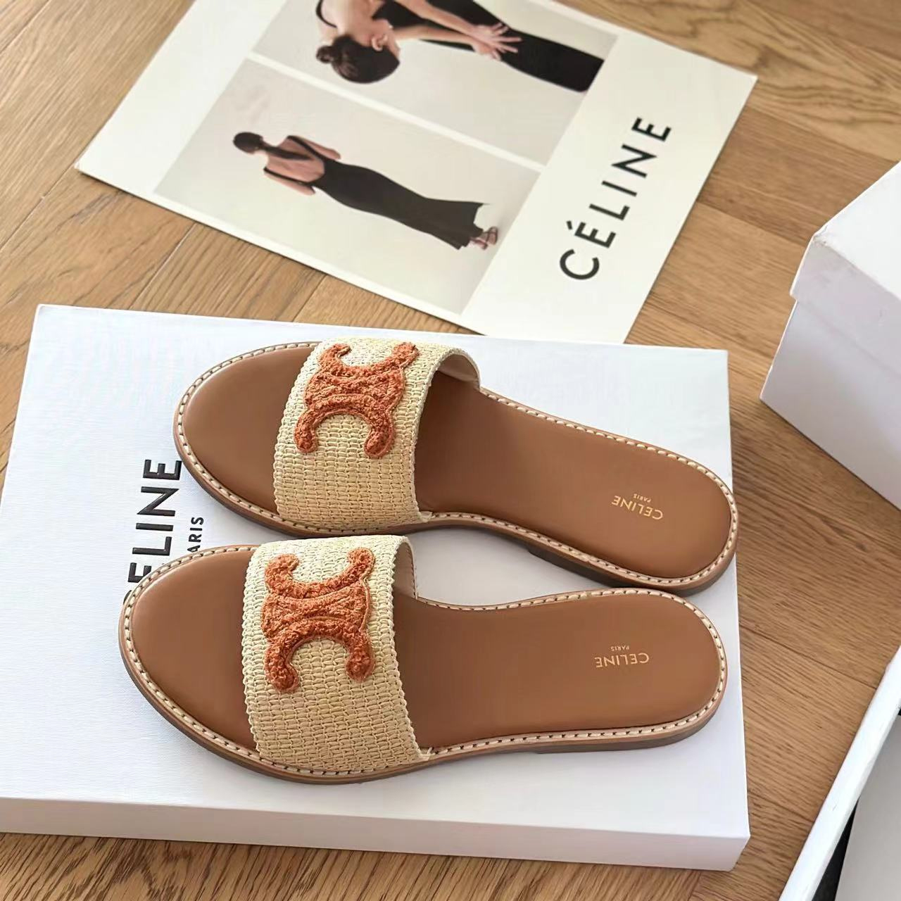 CELINE Women's Mule Sandals - Flat Sandals with Signature Logo