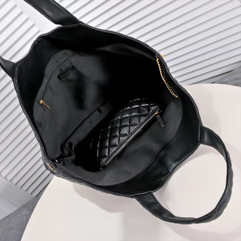 Chanel Leather&Canvas Tote Shoulder Handbag