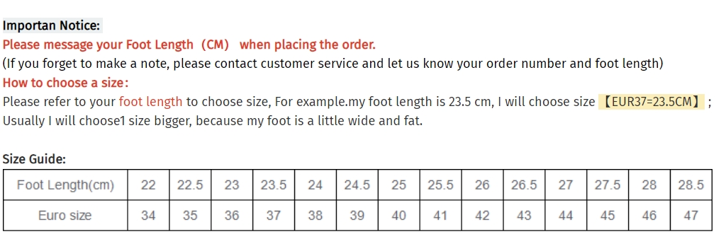DetailIf you have any doubts about the shoe size, please consult our website's customer service before placing your order. Kindly note that items purchased in the wrong size cannot be returned or exchanged. Thank you for your understanding.