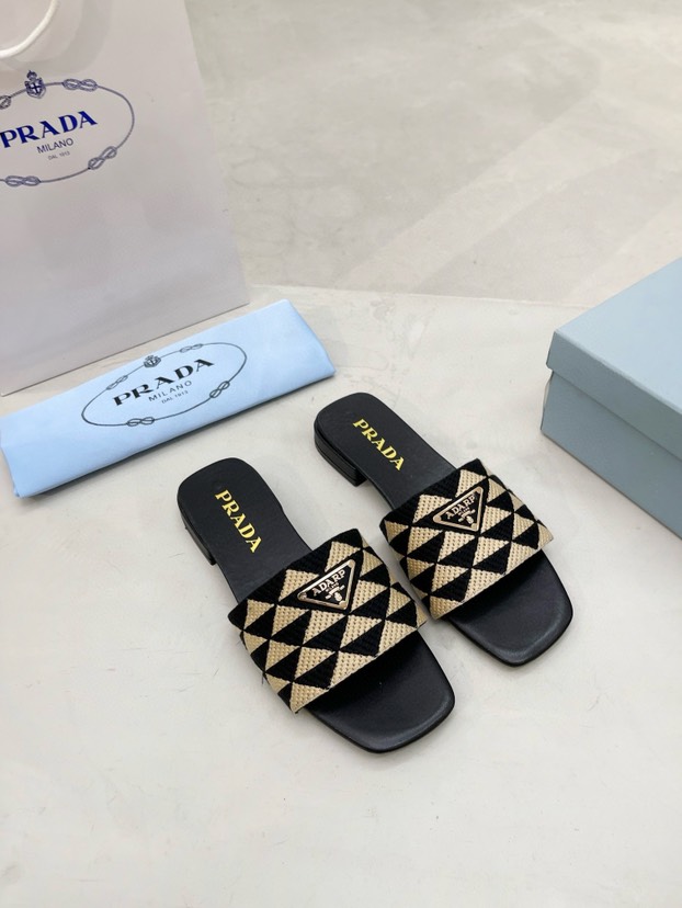 Prada Fabric Flat Bottom Slide Sandal