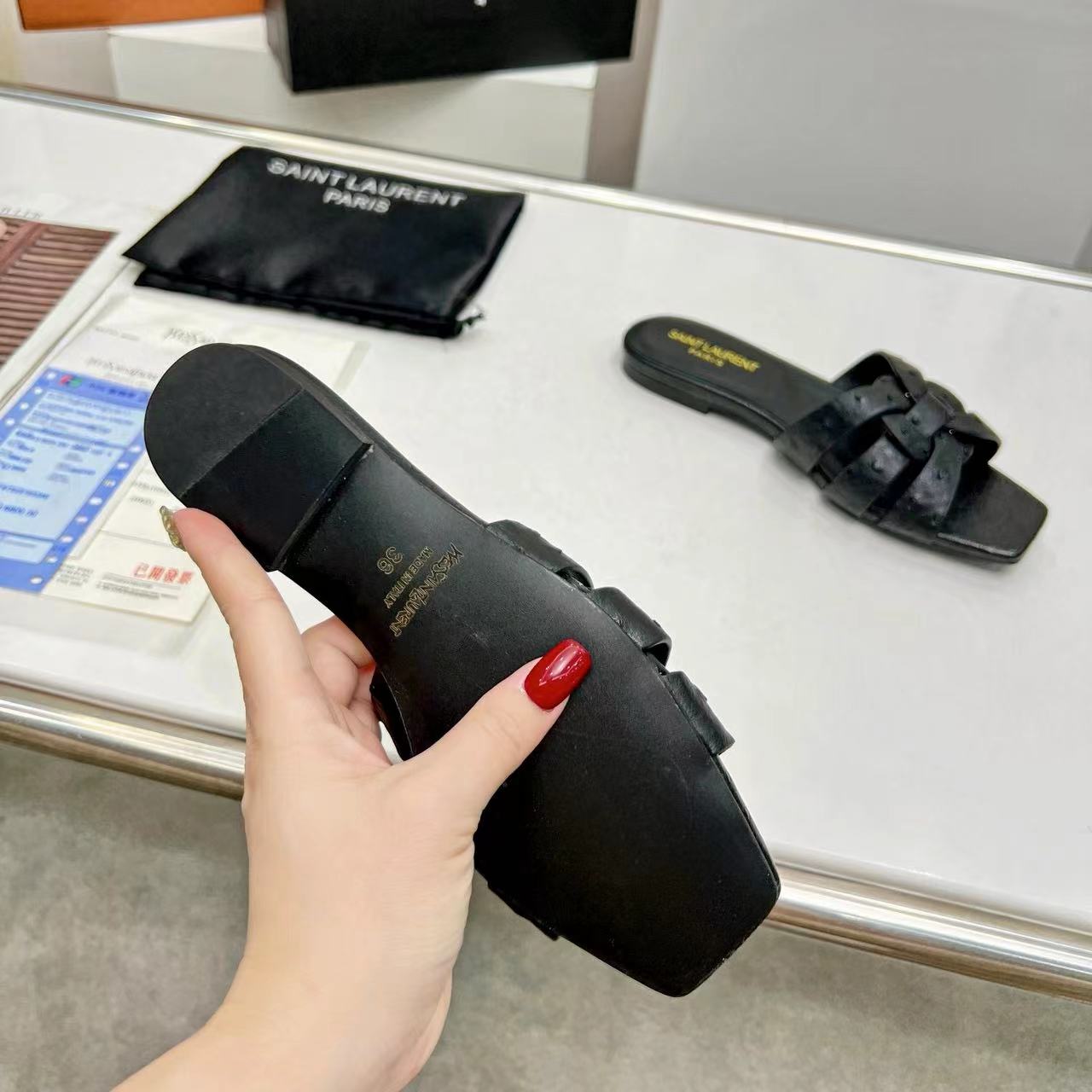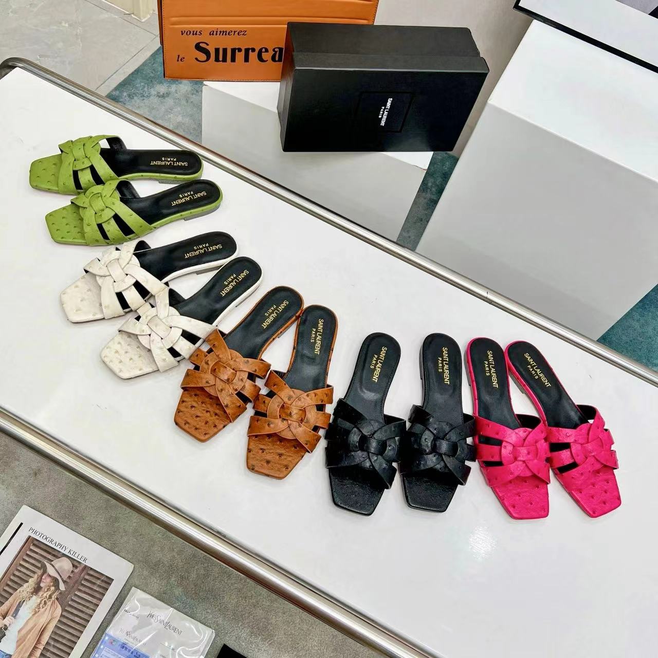 YSL Saint Laurent Nu Pieds Ostrich Pattern